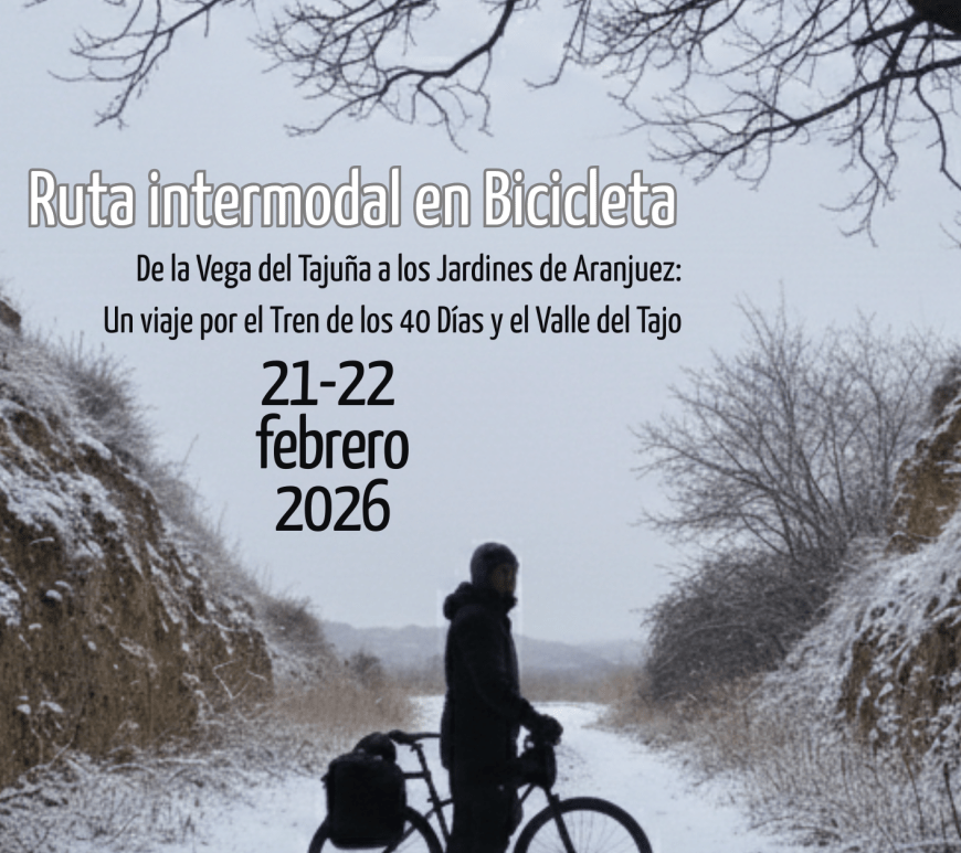 Fechas: Sábado 21 y domingo 22 de febrero de 2026. Plazas limitadas.Se responderá por correo electrónico únicamente a las personas que hayan rellenado el formulario adjunto y hayan obtenido plaza. Una vez cubiertas las plazas, no se enviará comunicación al resto de solicitantes. Ruta en bici de la Vega del Tajuña a los Jardines de Aranjuez: Un viaje por el Tren de los 40 Días … Continúa leyendo De la Vega del Tajuña a los Jardines de Aranjuez: Un viaje por el Tren de los 40 Días y el Valle del Tajo