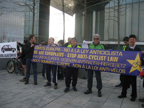 Aunque haya gobiernos y sectores sociales que defienden interesadamente lo contrario, también los españoles somos europeos. De hecho somos casi siempre europeos para las obligaciones, pero casi nunca para los derechos. Una vez más, nos encontramos en este caso. Mientras sus países promueven políticas para dar a la bicicleta un papel preponderante en sus ciudades, aquí en España quieren que seamos de nuevo la excepción. Ya somos la excepción europea en cuanto a la obligación del casco en carretera, dónde a pesar de que se ofreció como la solución a todos los males, seguimos destacando también en accidentabilidad ciclista.