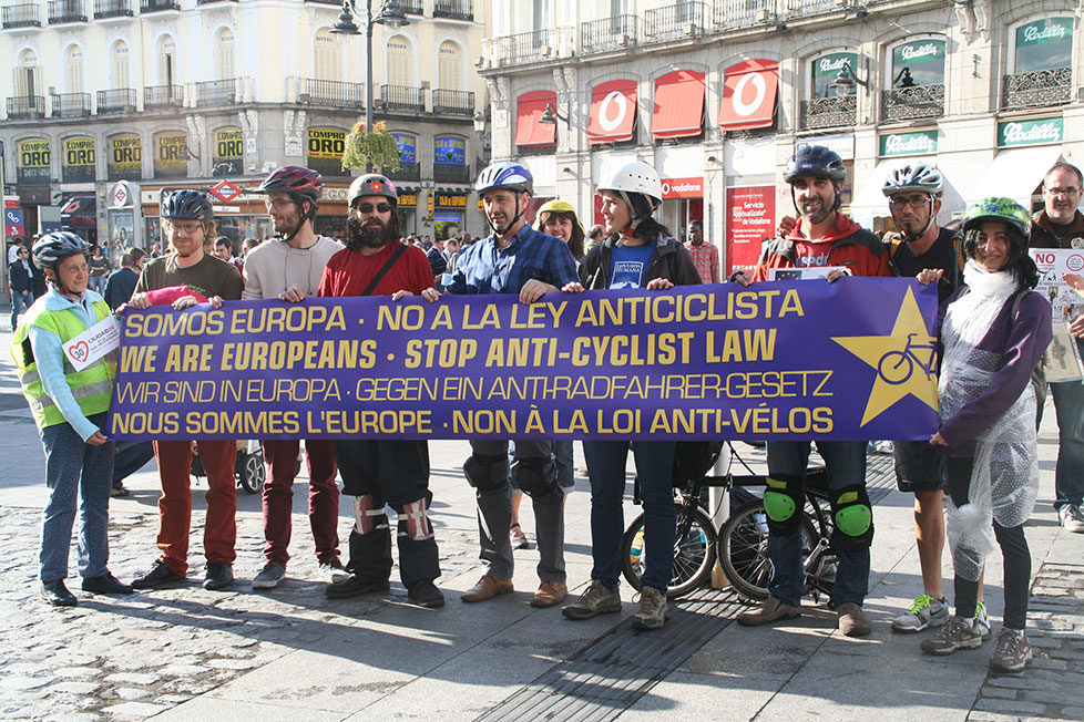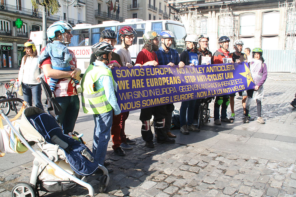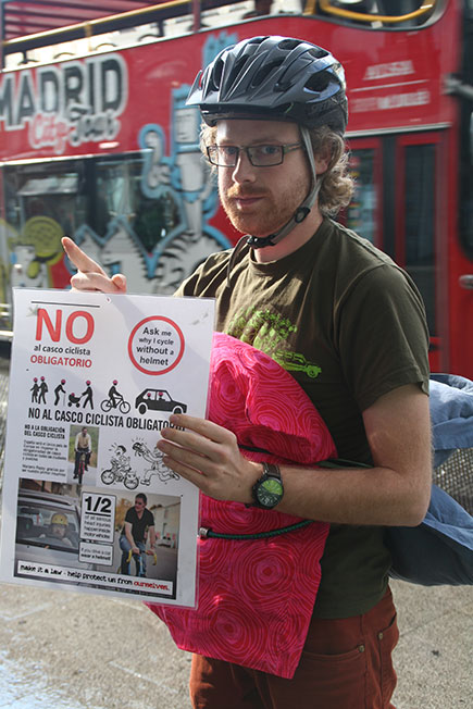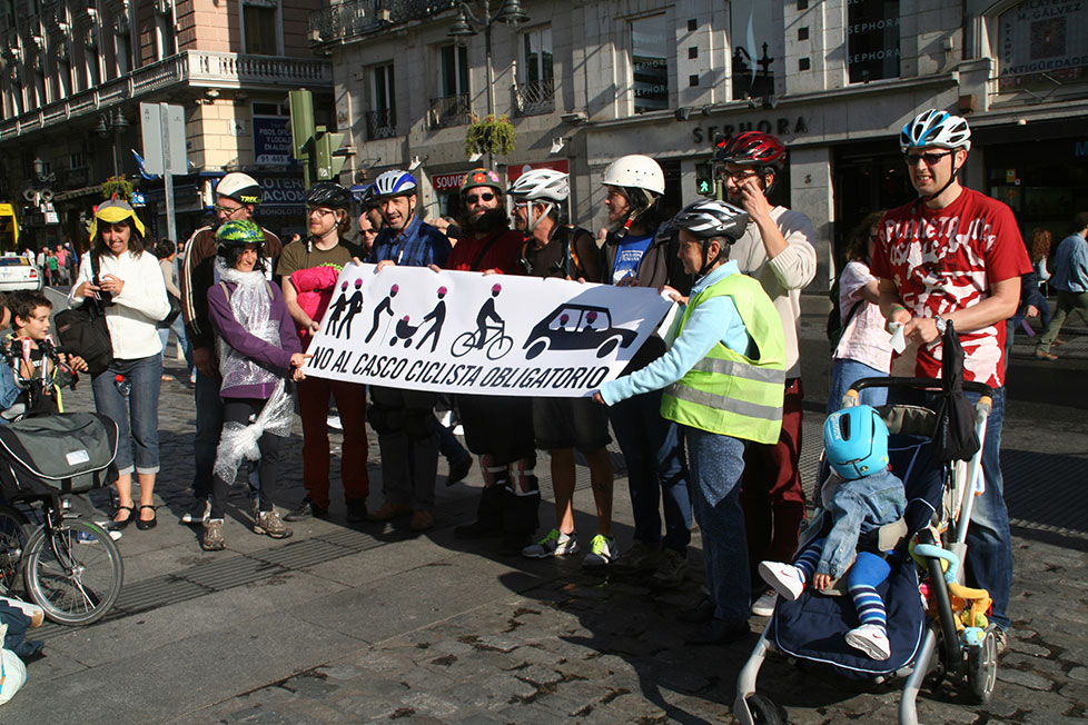 Algunas fotos de la acción reivindicativa llevada a cabo por Asociación Pedalibre, Cíclope e Impulsión Humana, junto con otros voluntarios, para reclamar unas normativas que generen ciudades para las personas y solicitar que el casco ciclista sea opcional. Podéis ver el vídeo en: https://pedalibre.org/2013/05/28/la-ciudad-30-kmh-es-el-casco-que-necesitamos/