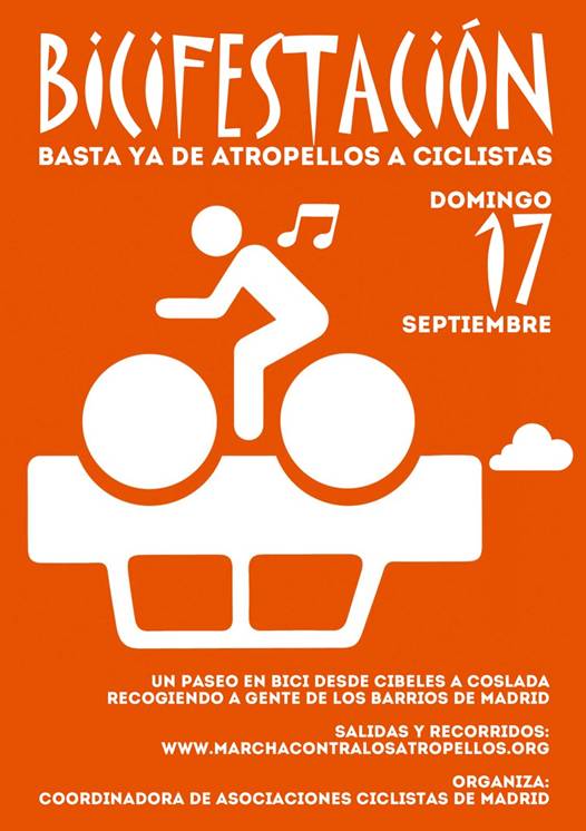 Como desde hace unos años, el domingo, 17 de septiembre de 2017, participamos junto con diversas asociaciónes en una marcha ciclista para reivindicar una infraestructura segura Madrid-Coslada: apenas serían 2 kilómetros desde la Avda. de Arcentales (Wanda Metropolitano) hasta el municipio de Coslada. Este año se ha sumado también la campaña Basta Ya de Atropellos a Ciclistas y allí, un grupo de socias y socios de Pedalibre, con este acto hemos querido homenajear a todas las víctimas y a sus familias y demostrar que el uso cotidiano de la bicicleta no solamente no es peligrosa, sino que salva vidas.
