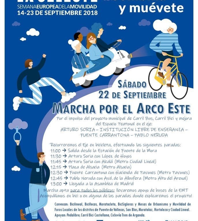 Durante ya más de 12 años, la Plataforma Ciudadana Bicilineal y un gran número de asociaciones del distrito de Ciudad Lineal, se han ocupado de recordarnos, a través de sus Paseos Reivindicativos, la necesidad de recuperar el eje Arturo Soria – Institución Libre de Enseñanza (antigua Hermanos García Noblejas) para las personas en su ejercicio de desplazarse con seguridad y eficacia en bicicleta, andando o en transporte público.