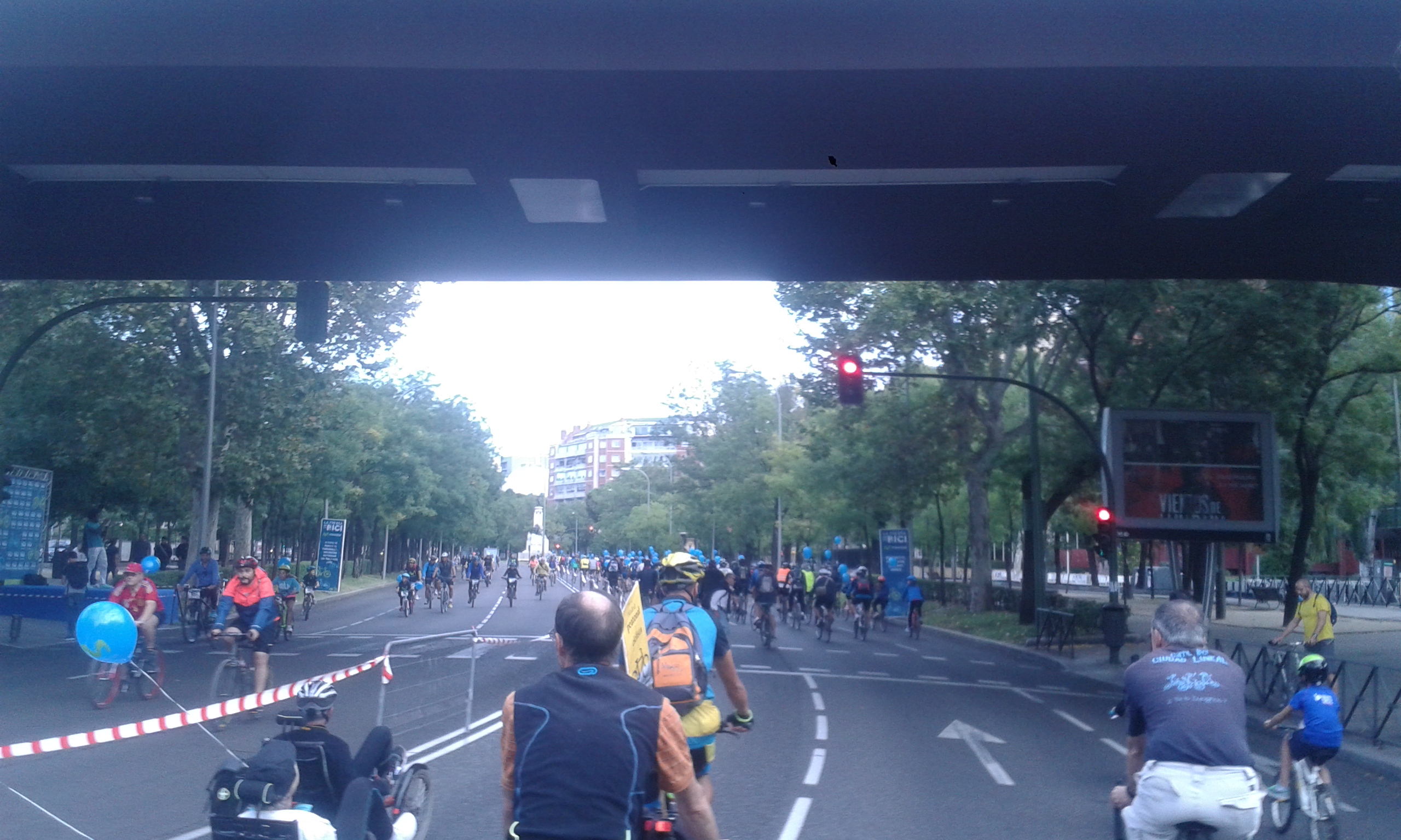 Desde 2016, la Fiesta de la bicicleta adquiere el formato de Ciclovía y se invita a los colectivos ciclistas a organizar rutas desde los barrios (1). Y precisamente se destina el eje de la Castellana como espacio común no solo para los ciclistas sino también para nuevas modalidades en auge como patines o patinetes. Será una nueva ocasión para recordar los compromisos adquiridos y escasamente cumplidos por parte de los diferentes equipos de gobierno e insistir nuevamente en que promover la bicicleta es apostar por un modelo de movilidad que alivia, e incluso soluciona, los graves problemas de inseguridad vial, contaminación de nuestra ciudad y cambio climático.