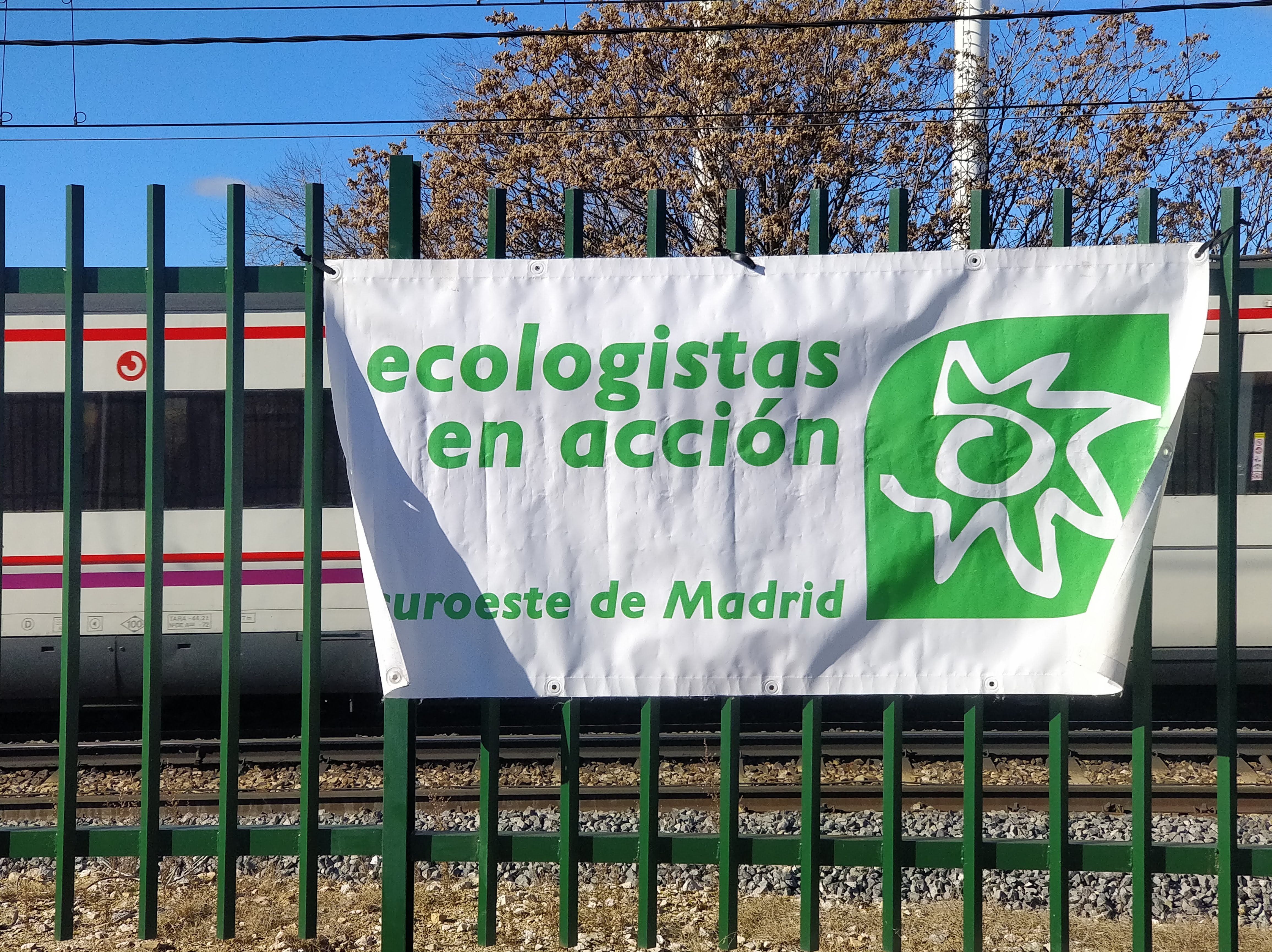Pancarta junto a la vรญa de Cercanรญas