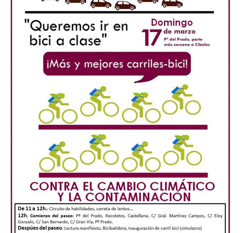 Domingo 17 de marzo desde las 11 h en el Paseo del Prado. Habrá actividades, paseo en bici (12 h) y lectura de manifiesto