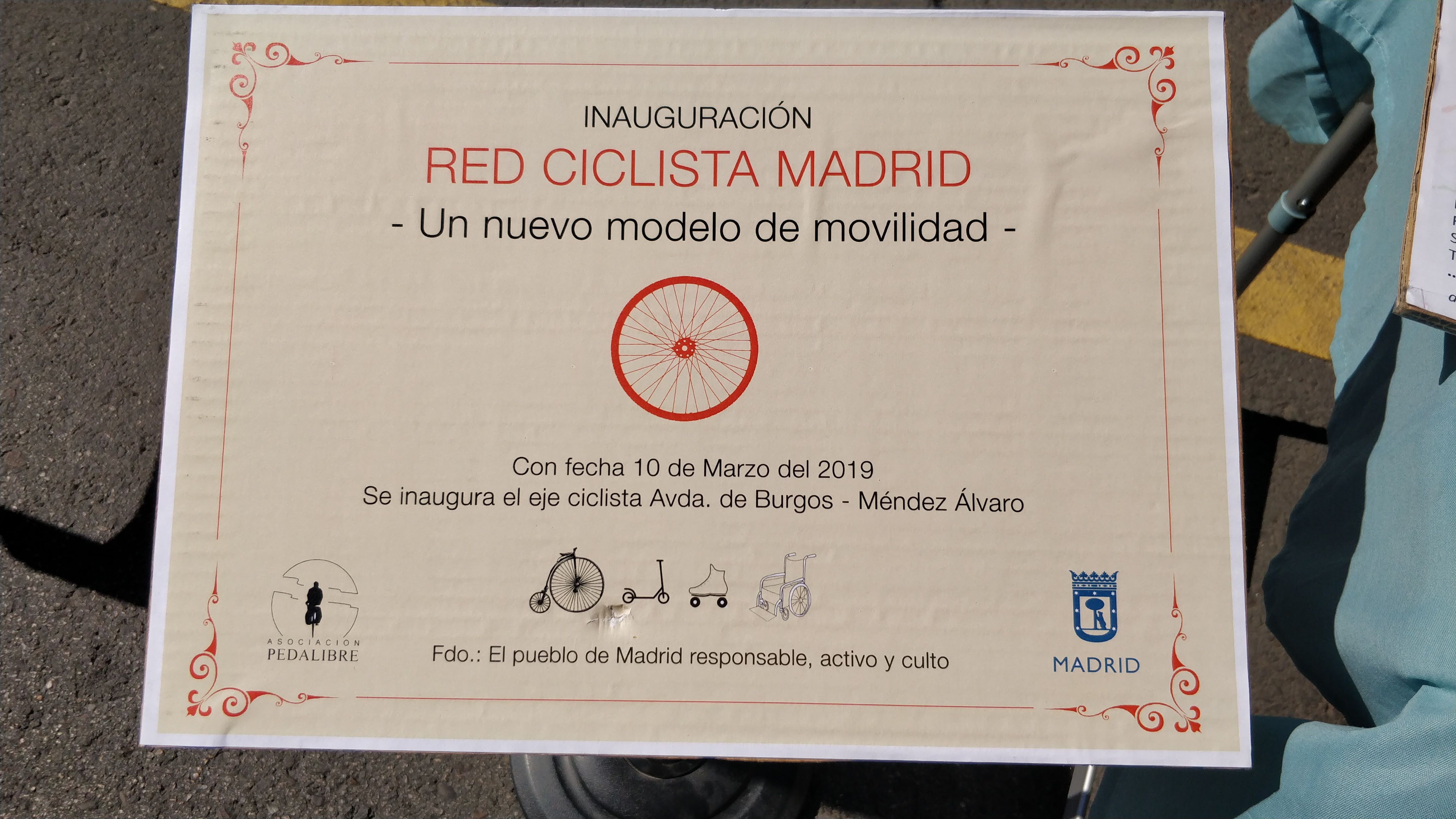 - Inauguramos el primer carril bici deโฆ #RedCiclista2021. Serรก un acto festivo que simbolizarรก la creaciรณn de uno de los 12 grandes ejes ciclistas que describe la propuesta Por una Red Ciclista en Madrid para 2021. (Pedalibre).