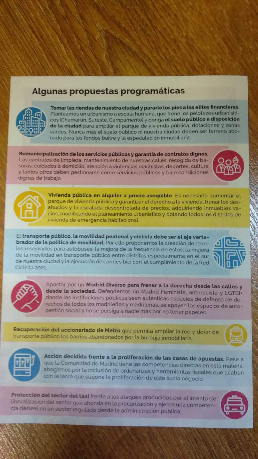 - Nos hemos reunido con Madrid en Pie Municipalista. En su programa proponen la creación de carriles bici en cumplimiento de la Red Ciclista 2021 (sábado, 11).