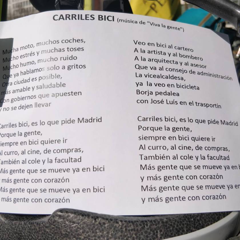 Los asistentes a la reivindicación festiva demandan el cumplimiento de los compromisos adquiridos por el Ayuntamiento de Madrid y la necesidad de actuar urgentemente a favor de la movilidad sostenible. Se enmarca dentro de las actuaciones que las asociaciones ciclistas desarrollan para difundir la propuesta Red Ciclista 2021, como paso previo a la Red Básica Ciclista descrita en el PDMCM, y la necesidad de que Madrid cuente con una red ciclista segura, a partir de carriles bici segregados y protegidos, que estructure adecuadamente toda la ciudad y haga que moverse en bicicleta sea una alternativa real, posible, atractiva y segura para toda la población.