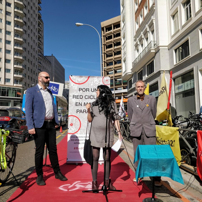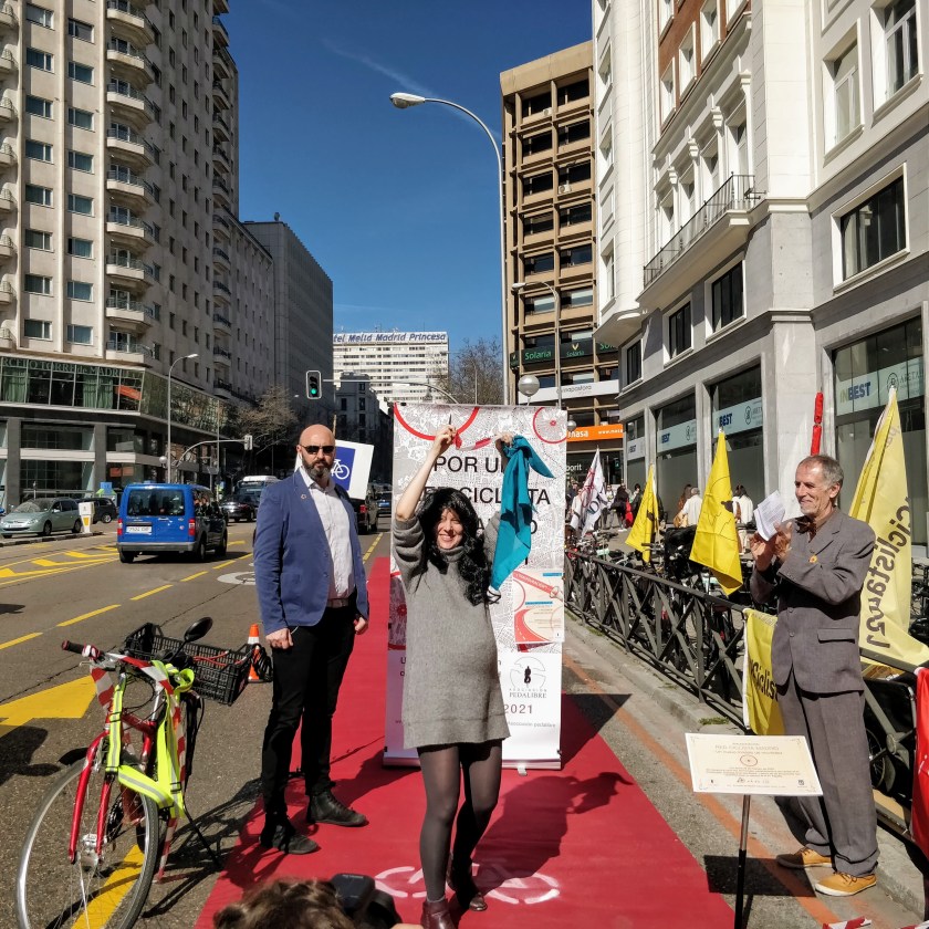 La vicealcaldesa Villabicis y el Concejal de movilidad Carburante inauguraron es sábado el nuevo carril bici de la calle Princesa, perteneciente a la Red Ciclista 2021, diseñada por Pedalibre.