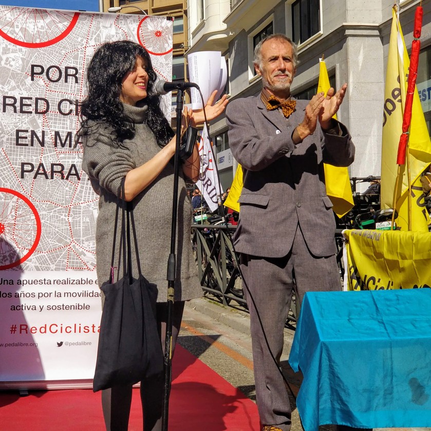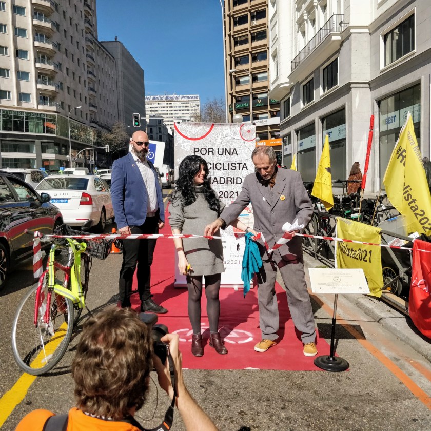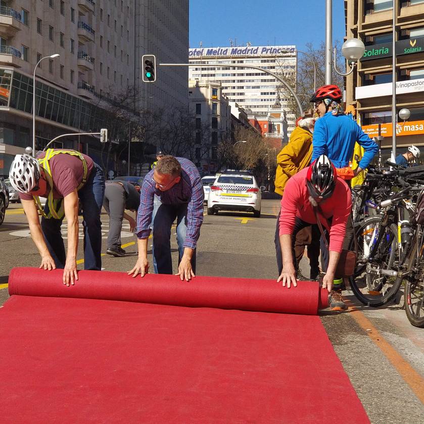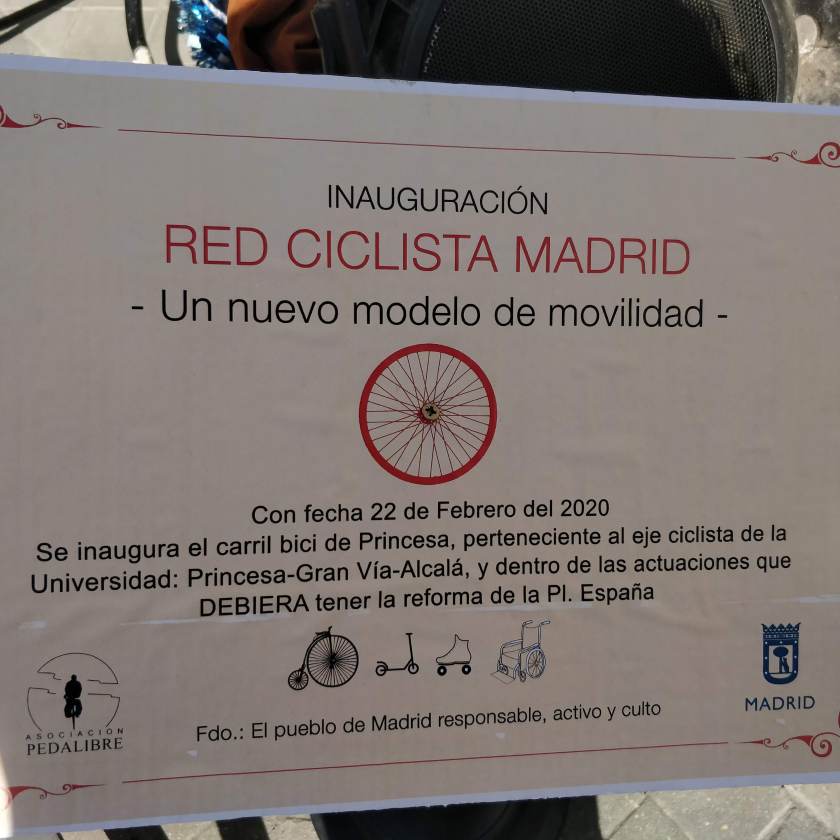 Los ciclistas de Madrid —con la asociación Pedalibre, el colectivo Carril Bici Castellana, BiciLineal y Biciclistas Montserrat, entre otros— realizaron la inauguración ficticia del carril bici en Pza. de España y una bicifestación en Princesa para reivindicar carriles bici segregados y protegidos en estas dos vías, en Cuesta de San Vicente y Ferraz. Contaron con la participación y el apoyo de políticos como Agustín Vinagre del PSOE y Ramón Linaza de EQUO, de la artista Cristina Rosenvinge y la arquitecta Belén Moneo.