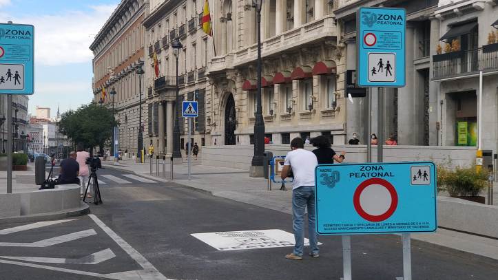 El Ayuntamiento ha eliminado hoy la señalización horizontal del carril bici y el CC30 en Mayor, Sol y Alcalá, instruyendo a agentes de movilidad y policía municipal para que los ciclistas desmonten a su paso por Sol o se desvíen por otras calles. Ambas actuaciones chocan frontalmente con el decreto del 18 de agosto (BOAM nº 8.710) publicado hoy que regula la nueva movilidad en Sol, pues en su disposición segunda, epígrafe D) dice: