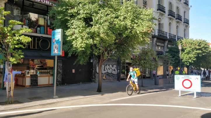 El eje ciclista Mayor-Alcalá se creó hace 8 años y forma parte de un eje más amplio que cruza la ciudad de este a oeste. La peatonalización puede de hecho mejorar el acceso, la comodidad y la seguridad ciclista, ya que el tráfico motorizado quedará restringido. Pero para ello hace falta un entorno adecuado que incluya la correcta señalización y la creación de un carril bici de doble sentido suficientemente ancho y diferenciado del espacio peatonal.
