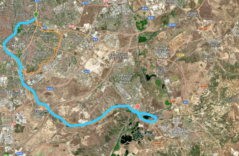 Esta ruta nos permite dejar atrás el centro de la ciudad y transcurrir por dos de los ríos más importantes de la Comunidad de Madrid, el Manzanares y el Jarama.