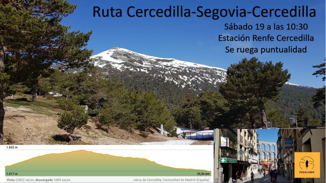 La salida la haremos desde la estación de Renfe de Cercedilla a las 10:30 (se ruega puntualidad) hasta llegar a Segovia donde comeremos.
