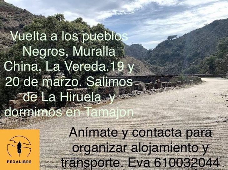 Si estás interesad@ contacta con nuestra compañera Eva al teléfono 610032044 o a nuestro correo info@pedalibre.org. Hazlo cuanto antes para organizar la pernoctación.