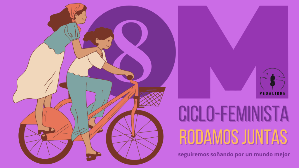 La movilidad ciclista, alejada del clásico patrón de varón deportista en edad activa sobre una bicicleta, y sí dentro de la idea de un ciclismo diverso, asegura el derecho a moverse de manera autónoma tanto niñas y niños, como mayores de 80 años. Porque tan obligados son los desplazamientos al trabajo, como acudir al colegio o a una cita médica. Y esa visión de cubrir los itinerarios relacionados con los cuidados está aún lejos de la mirada política de nuestros gobernantes, por eso en el 8M queremos reivindicarlos. Porque necesitamos ese enfoque más global de las políticas de movilidad, que no dejen de lado las necesidades de desplazamiento de la mitad de la población, hoy celebramos el 8 de marzo.