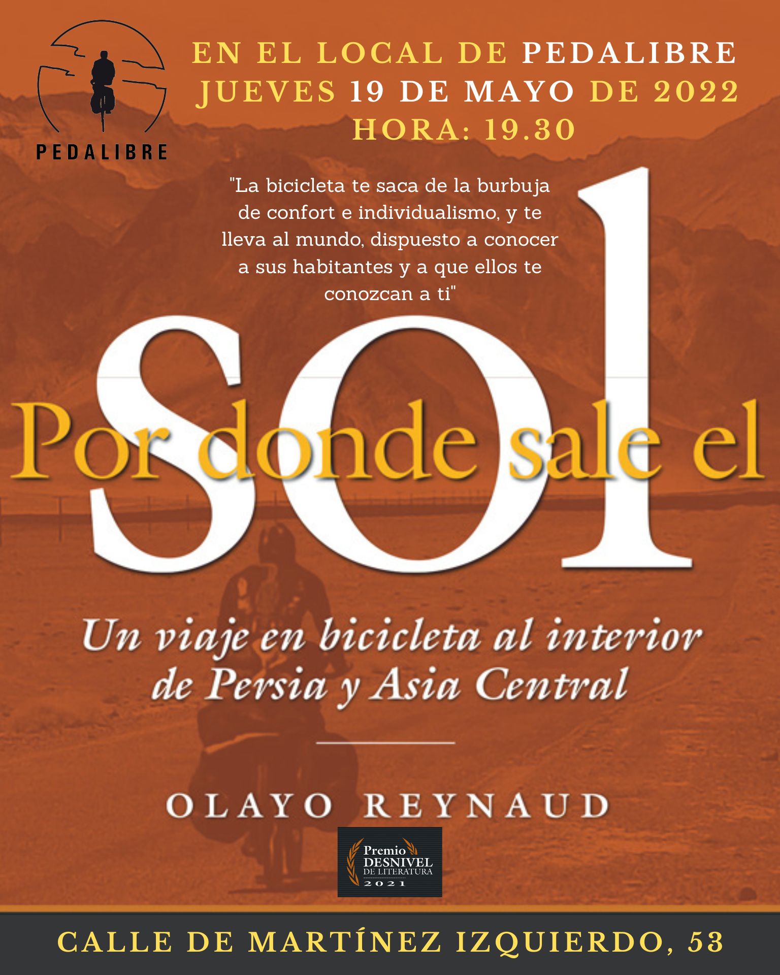 En 2019 decidió narrar su experiencia a través de un libro, Por donde sale el Sol, galardonado con el Premio Desnivel de Literatura 2021.