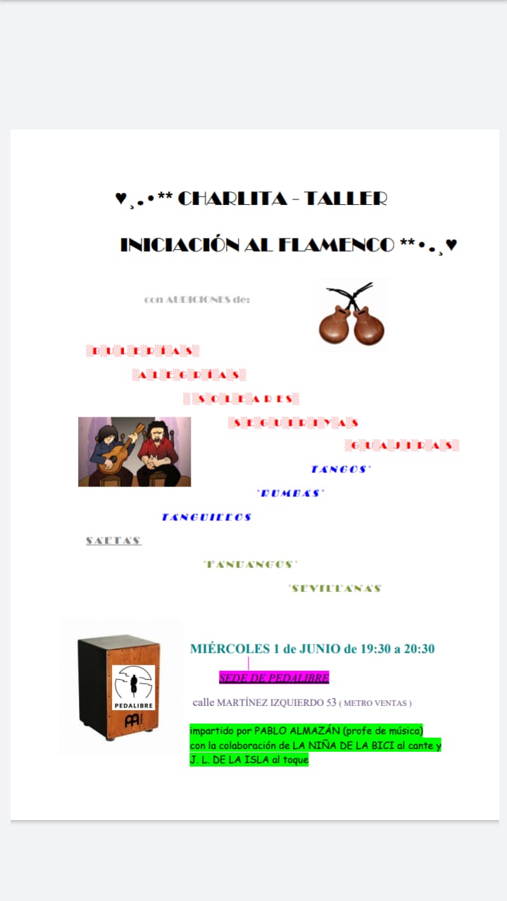 - Colaboran La niña de la bici (al cante) y J. L. de la Isla (al toque)
