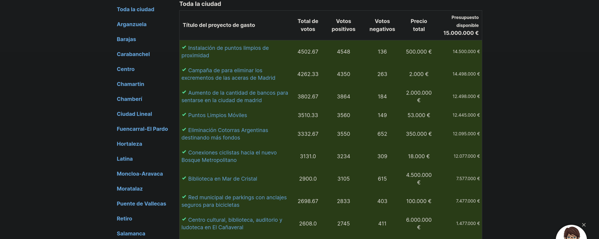 Una vez terminado el proceso de votación de los presupuestos participativos, ya han salido los proyectos ganadores ejecutables entre 2023 y 2024.