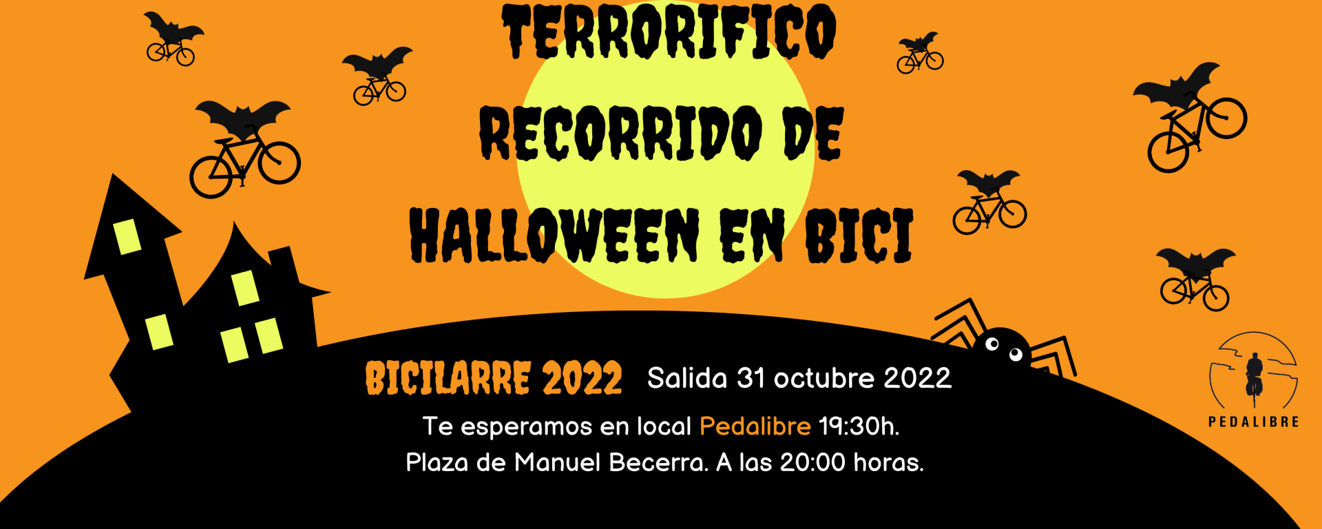 Nos vemos el lunes 31 de octubre, a las 19:30 horas, en el local de Pedalibre donde podrás disfrazarte o vestirte con los colores de la vida o de la muerte, de naranja o de negro. A las 20 horas, haremos una parada con nuestras bicis en la plaza de Manuel Becerra para recoger a las personas que no lleguen a tiempo a nuestro local.