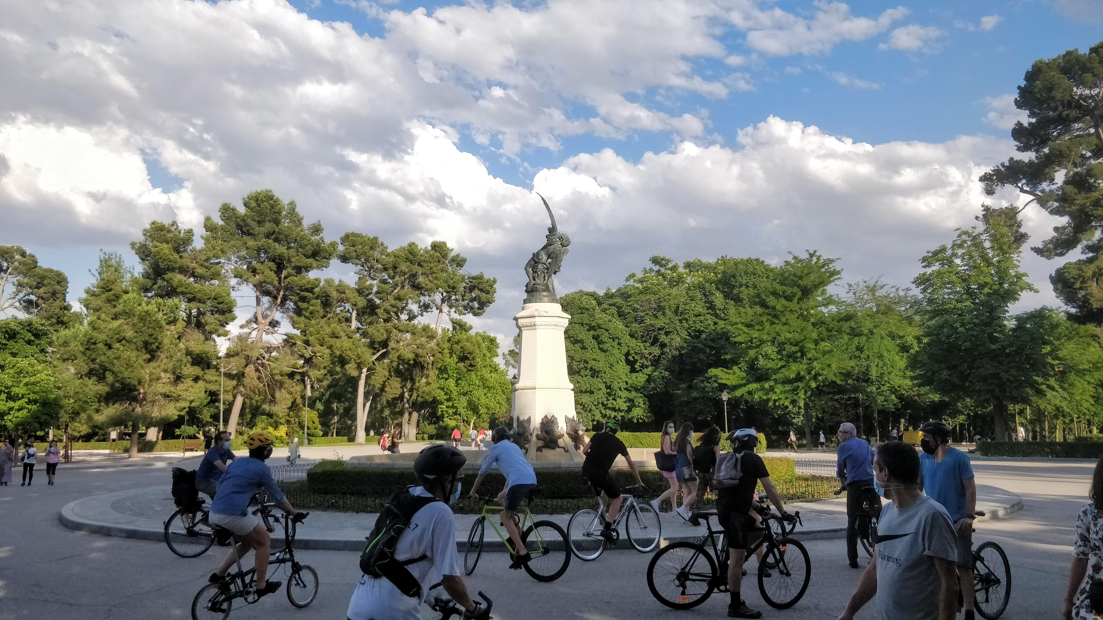 Una vez recorrido el parque en su casi totalidad seguiremos pedaleando por la calles de Madrid, quizás con música de un sound system, para terminar la jornada nocturna en el aparcabicis de La Bicicleta Café.