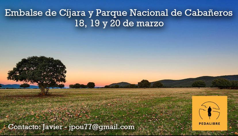 Todo el recorrido transcurre por carreteras con muy poco tráfico y un excelso y variado paisaje natural. Pedalearemos junto al agua del embalse de Cíjara, lleno de islas y de verde vegetación, posteriormente nos adentraremos en los espesos montes de Toledo en su zona mejor conservada, el Parque Nacional de Cabañeros. No es infrecuente disfrutar del vuelo de buitres y rapaces, como tampoco de pedalear junto a algún asustadizo ciervo o corzo.