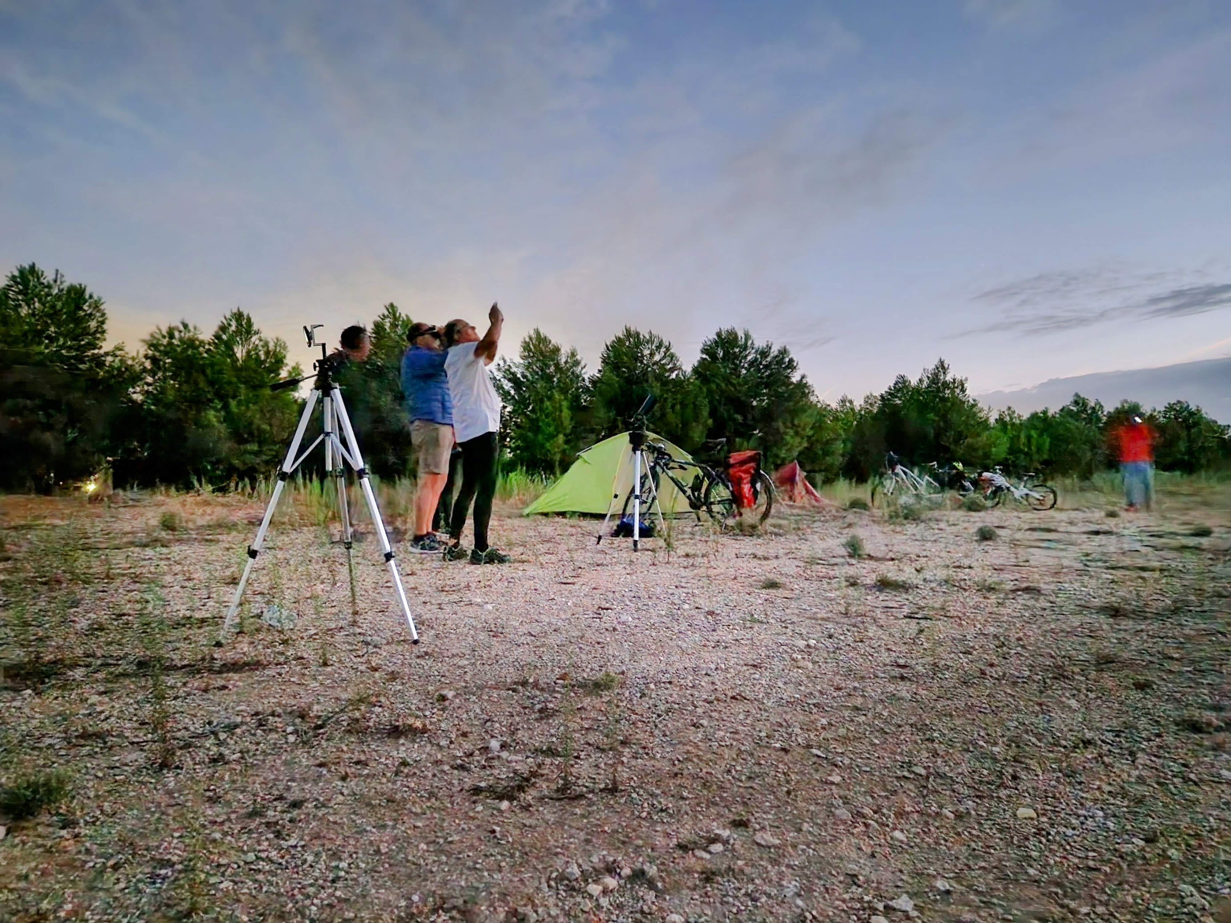 La ruta en bici hasta el lugar de observaciรณn y pernocta es de aproximadamente una hora. Llevaremos un pequeรฑo telescopio y prismรกticos para observar las estrellas y demรกs astros, daremos una pequeรฑa charla de iniciaciรณn a la astronomรญa con explicaciones sobre las constelaciones visibles. La vuelta al metro se harรก al amanecer, en los alrededores del metro de Arganda del Rey hay bares para desayunar.