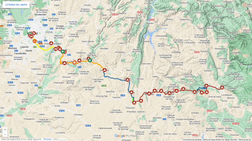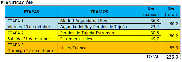 - Viernes, 20 de octubre: Madrid – Arganda del Rey – Perales de Tajuña (60,2 Km)