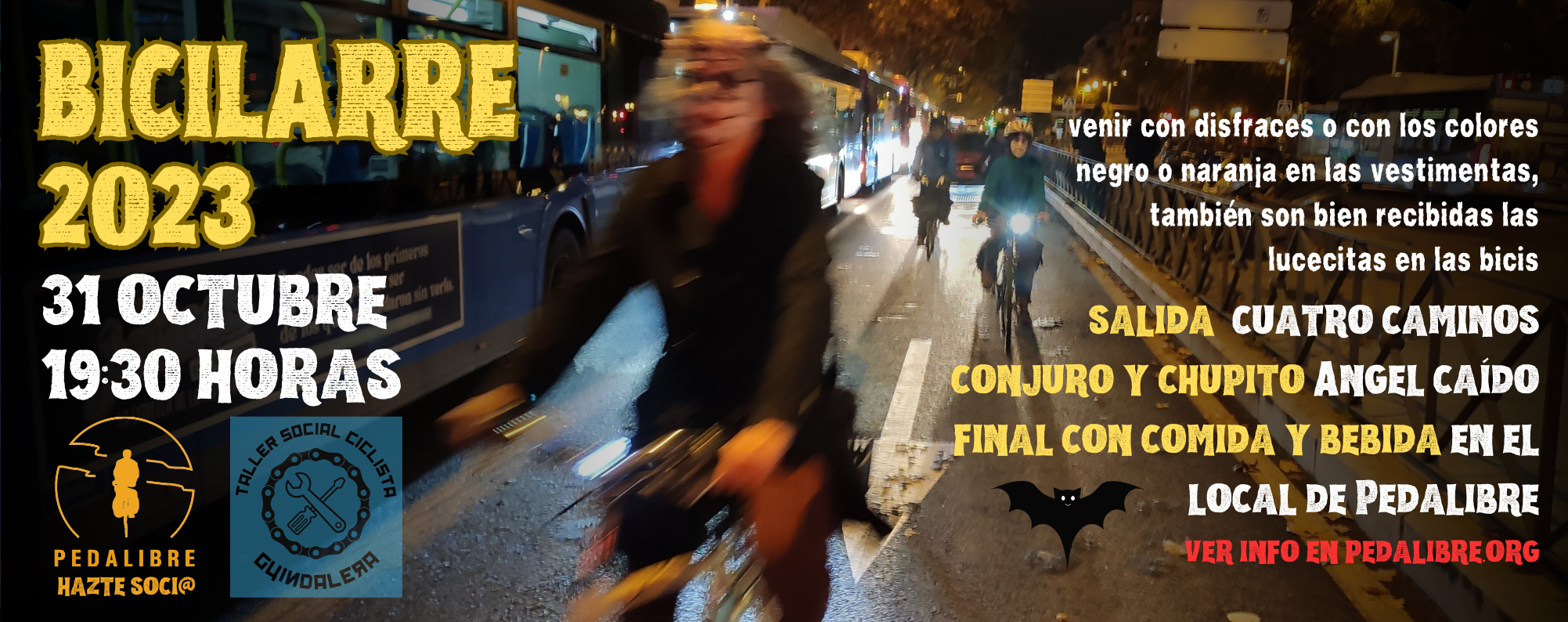 Falta muy poco para la noche más terrorífica del año, la noche de Halloween y este año Pedalibre junto con el Taller Social Ciclista Guindalera organizamos el #Bicilarre2023.