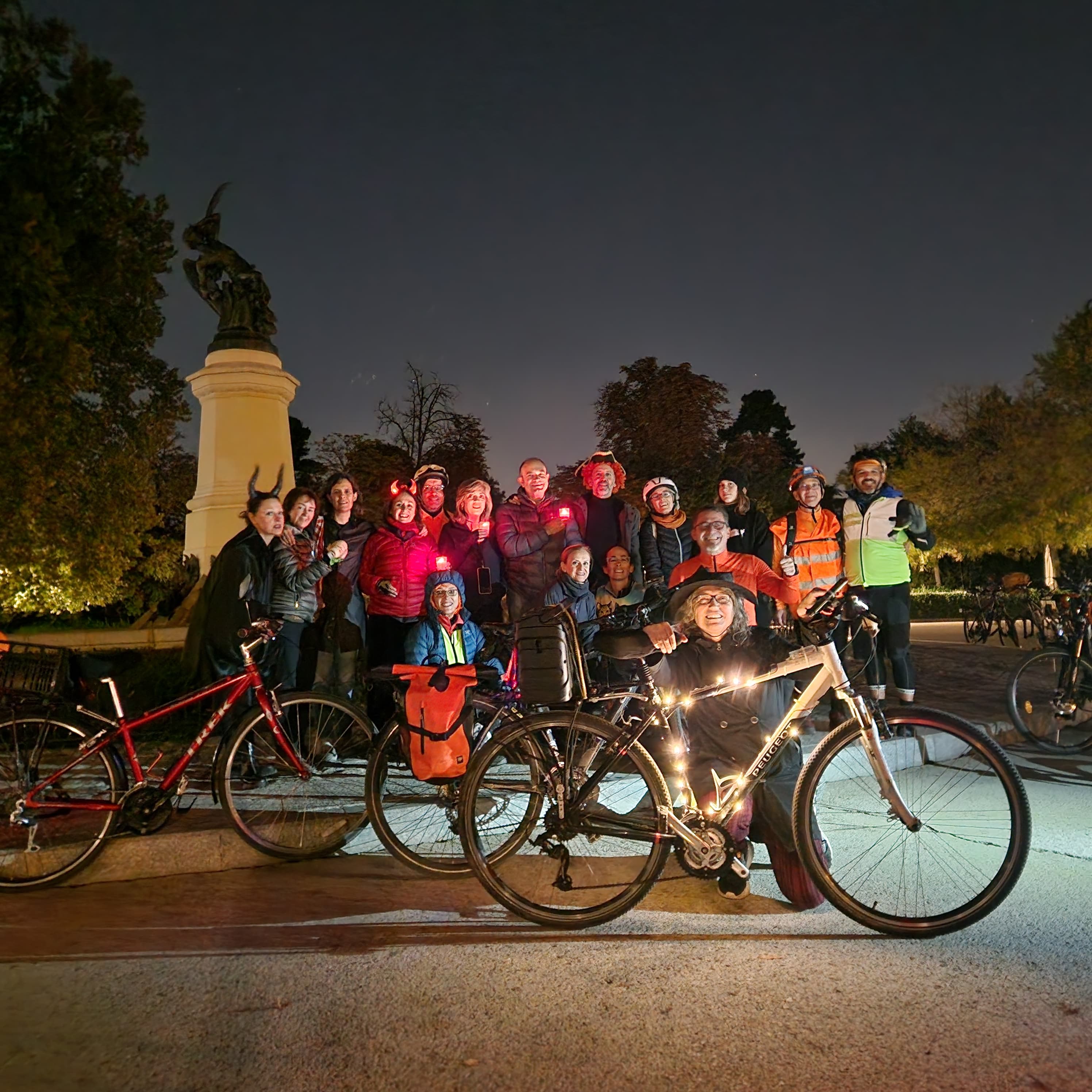 Nos vemos el martes 31 de octubre, a las 19:30 horas, en la glorieta de Cuatro Caminos (en la esquina de las calles Bravo Murillo y Santa Engracia). Daremos un paseo por las calles de Madrid hasta el parque del Retiro y, a una hora indeterminada, haremos una parada con nuestras bicis bajo la mítica estatua del Ángel Caído donde daremos la bienvenida a los fantasmas y difuntos.