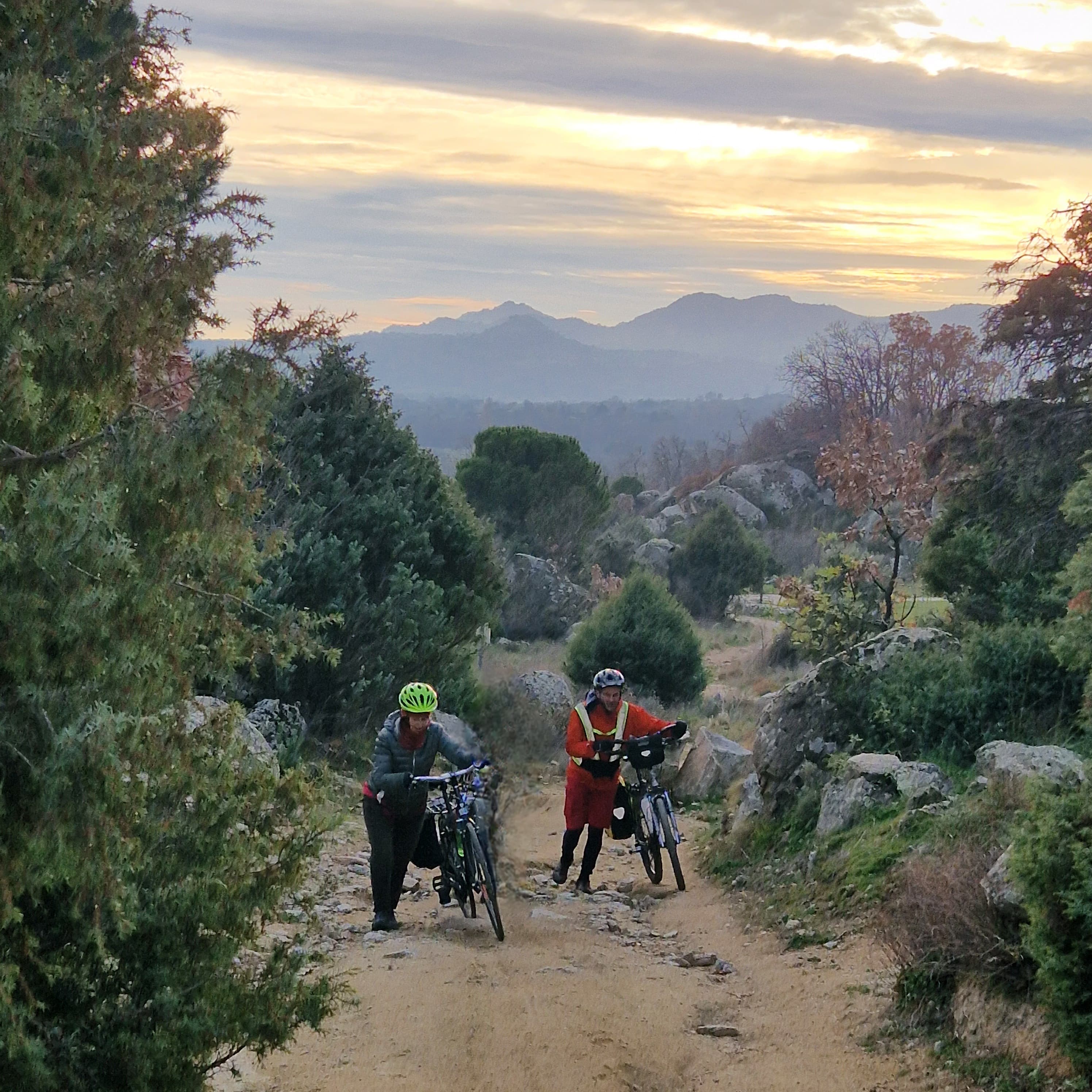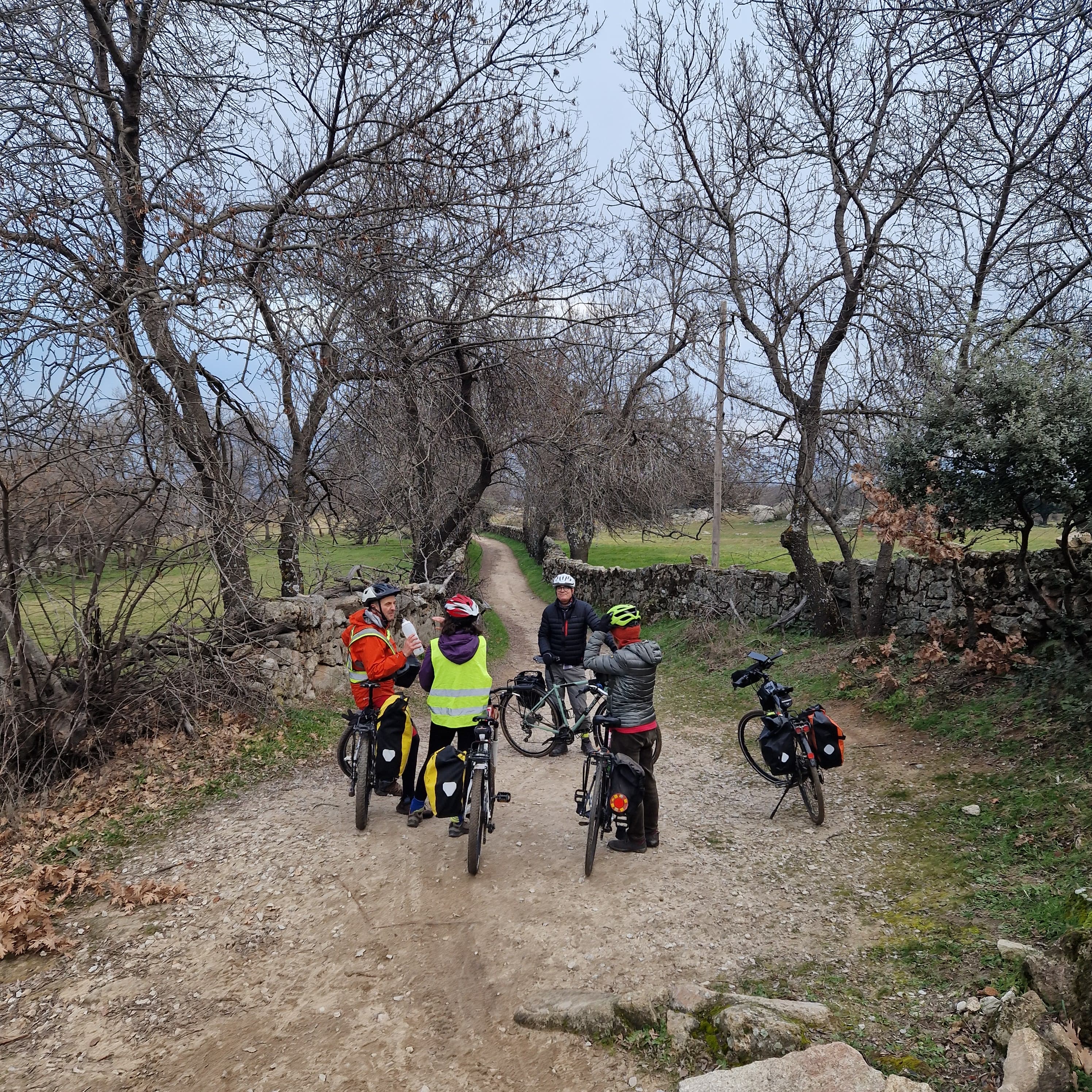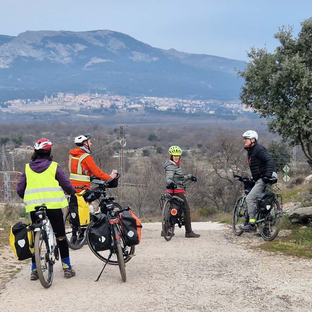 La jornada en bici desde Santa Maria de la Alameda a El Escorial nos ha ofrecido vistas magníficas tanto del paisaje montañoso de la sierra de Madrid como de las localidades atravesadas. Aunque el día estuvo nublado, la temperatura fue estupenda para disfrutar del pedaleo y de la comida conjunta en un bar de Zarzalejo. La experiencia culminó con la visión espectacular del Monasterio desde el tramo de calzada romana que todavía perdura entre Zarzalejo y El Escorial.