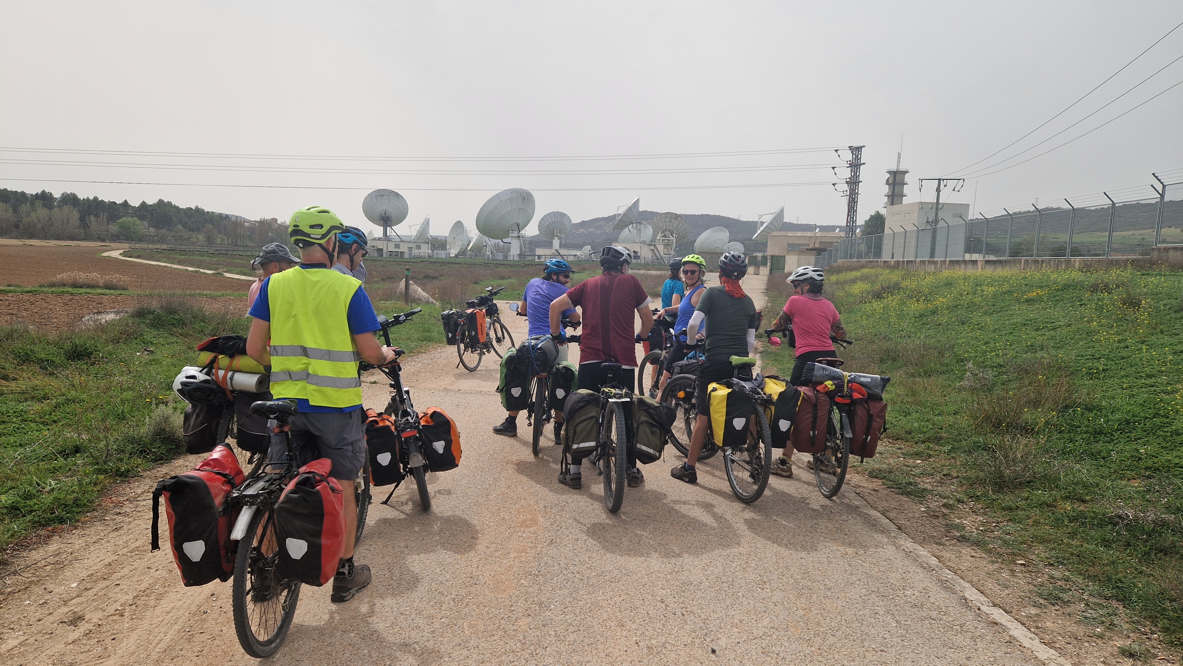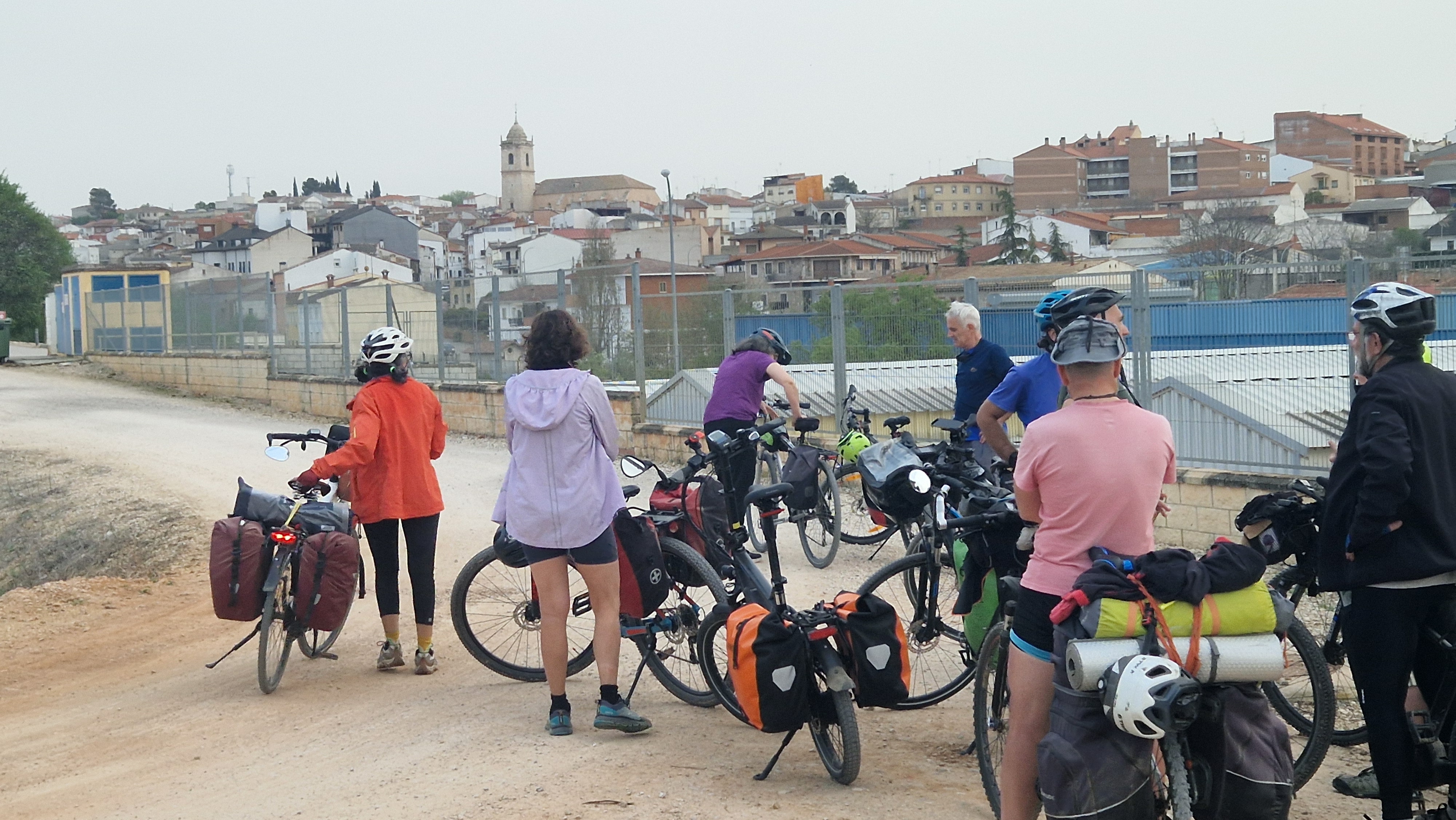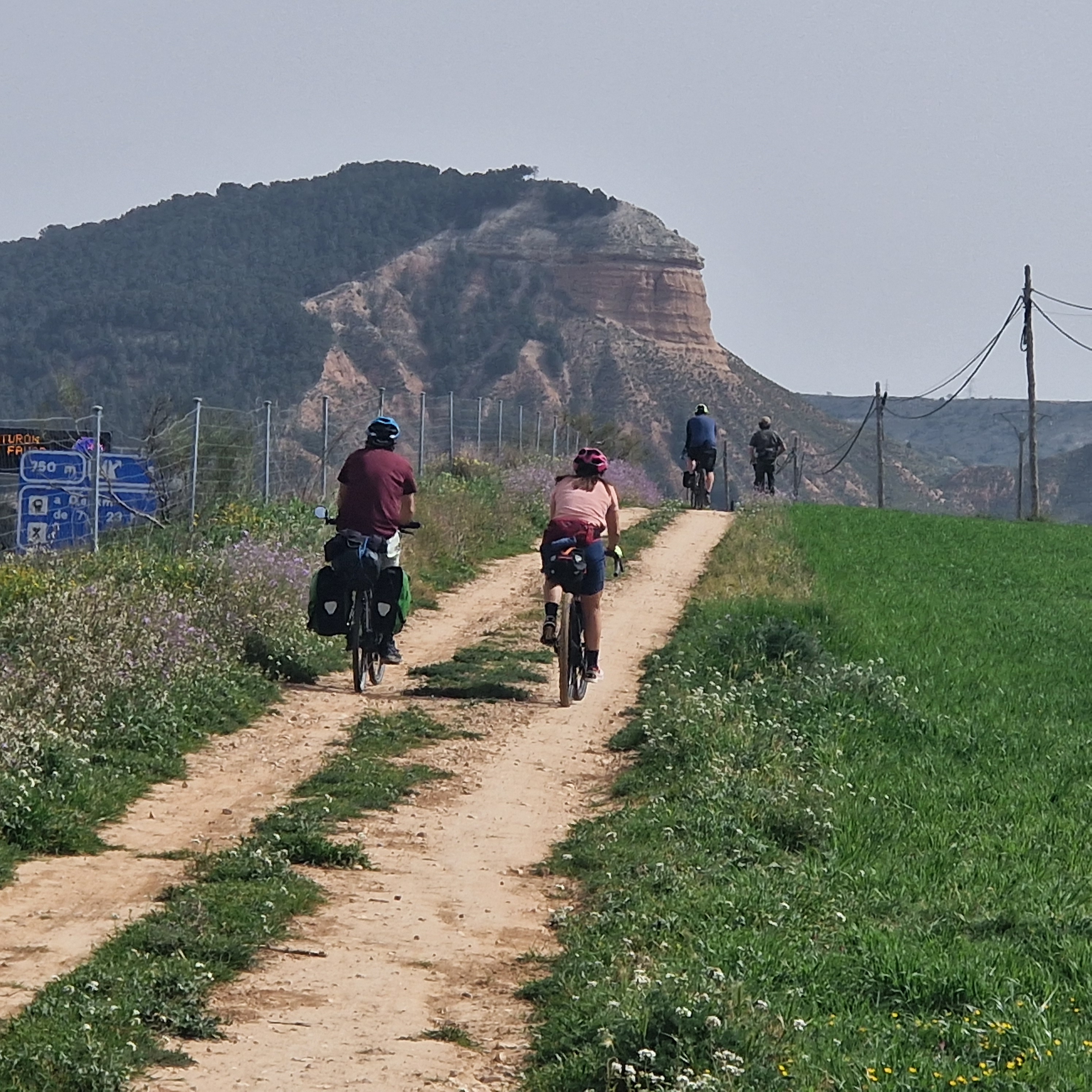 Llegamos a Torija, donde nos espera el asombroso castillo, sede por cierto del museo sobre el libro histórico de Camilo José Cela, y para nuestra sorpresa nos encontramos con la fiesta anual de las gachas. Algunos incluso participan del jurado. Risas, probamos varias tipologías, comida compartida en el pequeño parque con fuente, y retomamos el camino, esta vez tierra adentro separados de la autovía. Seguimos un rato también las vías del AVE a Barcelona, pasa un Iryo estruendoso, y compartimos pensamientos acerca del impacto ambiental enorme en términos de territorio, de cables, de infraestructuras que supone una línea de alta velocidad.