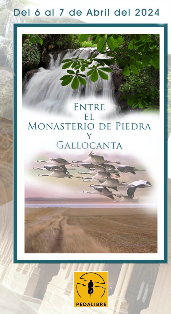 Siguiendo el curso del río Piedra y por pequeñas carreteras locales nos iremos adentrándonos en el cañón del río piedra atravesando pueblos como Cimballa, Aldehuela de Liestos, Tórralba de los Frailes y al final del día llegar a la localidad de Gallocanta. Observaremos su laguna y con suerte su numerosa variedad de aves migratorias. Realizando poco más de 55 Kms este primer día. El segundo día transcurrirá por pequeñas carreteras atravesando pueblos como: Santed, Atea, Acered, Castejón de Alarba, Munebrega, terminando en Nuévalos, en total unos 54 kilómetros más o menos. Se trata de una ruta donde esta previsto llegar a hacer noche en Gallocanta y cada persona como ya sabéis es libre de llevar material para dormir y cocinar si hiciera falta, aunque pasaremos por algunos pueblos para aprovisionarnos. Como ya sabéis cada persona es responsable del cumplimiento de las normas de circulación, y es responsable de sí misma en todo momento y debe traer la bicicleta en perfecto estado.