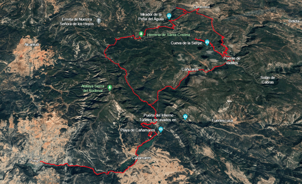Día 2. Domingo 28/04. 50 Km. Puente de Vadillos – Carrascosa – Hoz de Tragavivos – Herrería de Santa Cristina – Cañamares – Priego