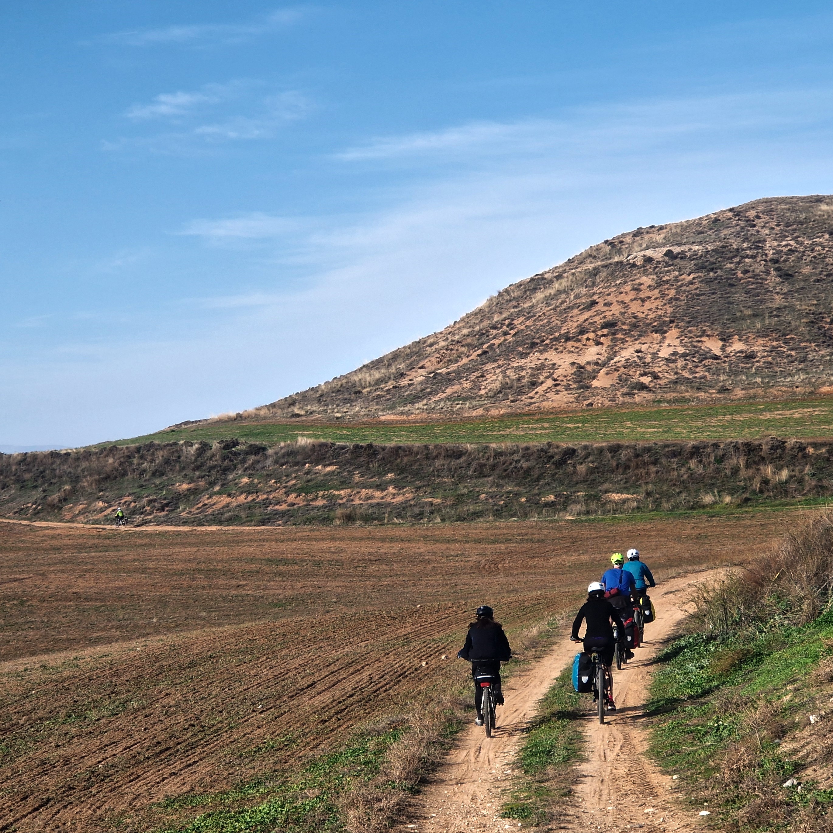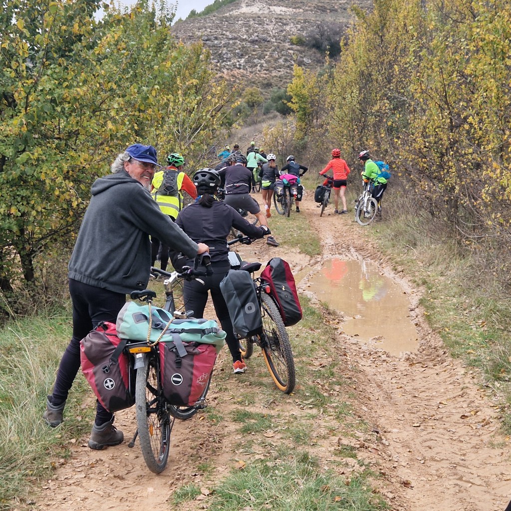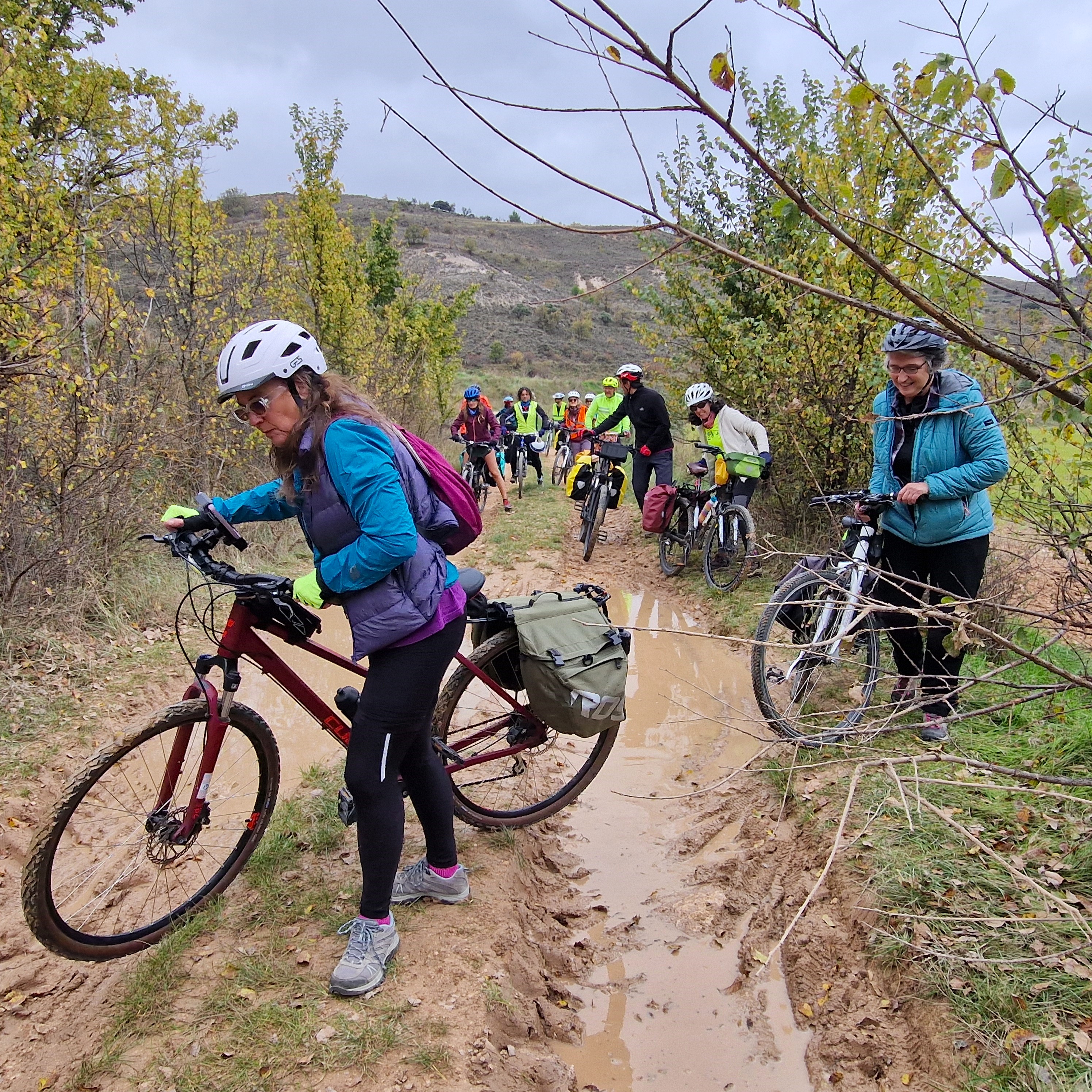 Firme: principalmente pistas en buen estado y carreteras, con algĂşn camino. En caso de lluvia o contratiempo, hay previstos recorridos 100% carretera.