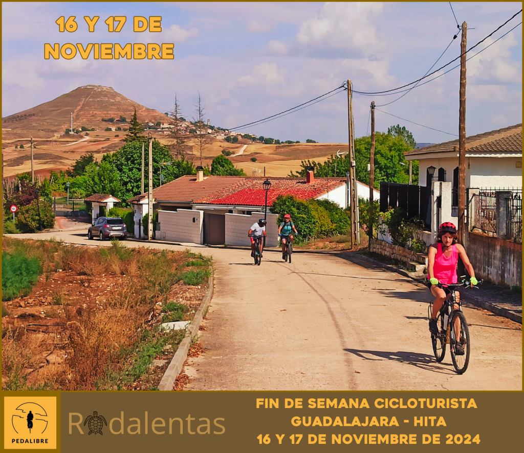 DescripciĂłn: Pasaremos los dos dĂas pedaleando tranquilamente. Es necesario llevar comida y ropa de abrigo, luces y reflectantes por si se hace de noche. Casco obligatorio en carretera. Respecto al agua, se pasa por varios pueblos donde es posible rellenar el bote. En los pueblos donde se prevĂ© comer habrá bares y algĂşn restaurante, si bien la oferta no es muy grande. Aunque el sábado pasaremos por la ciudad de Guadalajara, no podremos parar mucho tiempo a hacer compra.