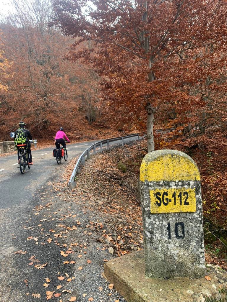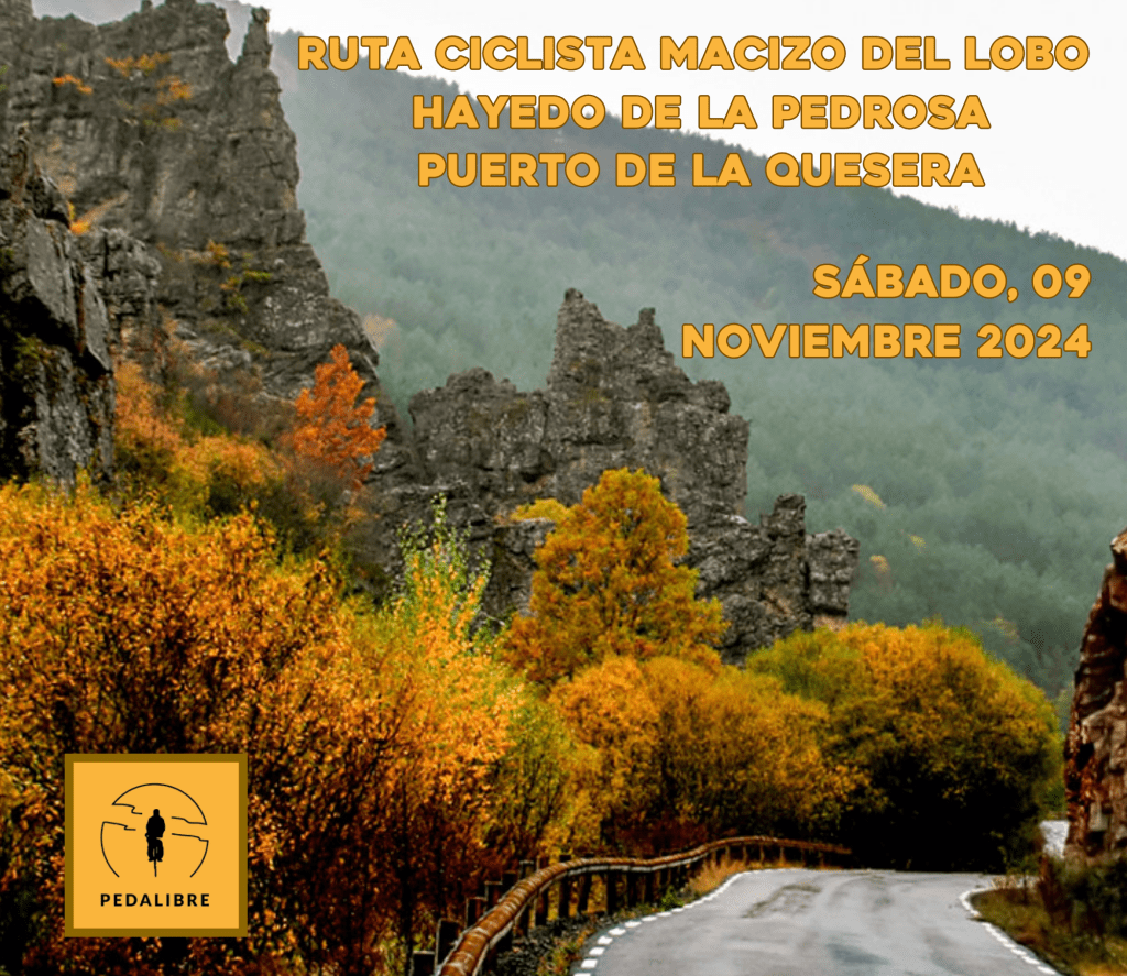 Subiremos en bici al puerto de la Quesera (Guadalajara) en la Sierra de Ayllón desde Riofrío de Riaza (Segovia), combinaremos el trayecto con un paseo a pie por el hayedo. El hayedo de la Pedrosa es menos famoso que otros, pero realmente es muy bonito y con algunos ejemplares de hayas muy llamativas, obviamente el otoño es el mejor momento para visitarlo.