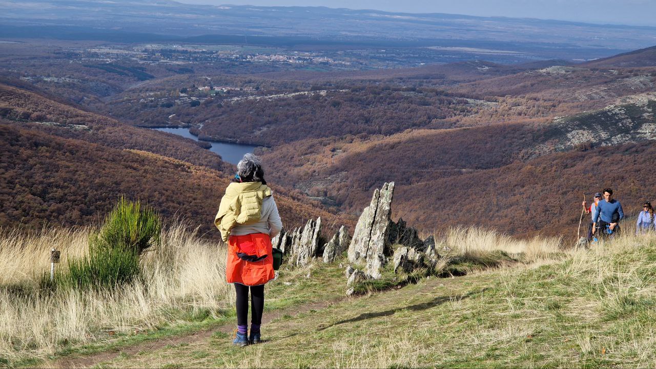Después iremos al collado de San Benito (macizo del Pico del Lobo) por pista de tierra, pudiendo disfrutar de las vistas de ambas vertientes, la de Segovia y la de Guadalajara con el pico Ocejón al fondo.