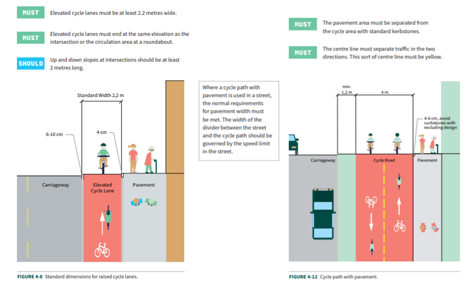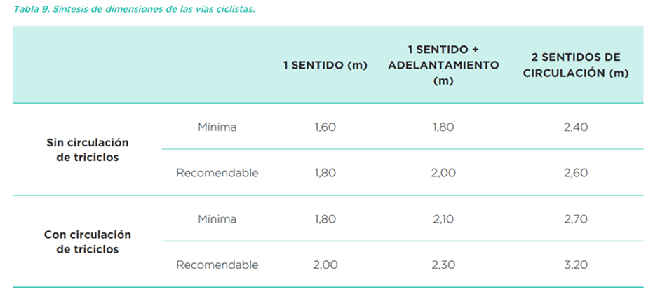 El Manual de Diseño de Infraestructura Ciclista del propio ayuntamiento de Madrid o la Guía de Recomendaciones para el diseño de infraestructura ciclista del Ministerio de Transportes y Movilidad Sostenible, recoge las medidas recomendadas para los carriles bici según los tipos de ciclos. Dimensiones que, por otro lado, se han quedado cortas si atendemos a las recientes actualizaciones del Manual CROW holandés o el Manual para el diseño de calles de Oslo. Es importante considerar tanto el efecto llamada que tendría un buen carril bici como su función social (circulación en paralelo), un uso diverso (inclusividad ciclista): triciclos, ciclos adaptados (PMR) y las cada vez más bicicletas de carga (ciclologística), para dimensionar correctamente la vía ciclista.