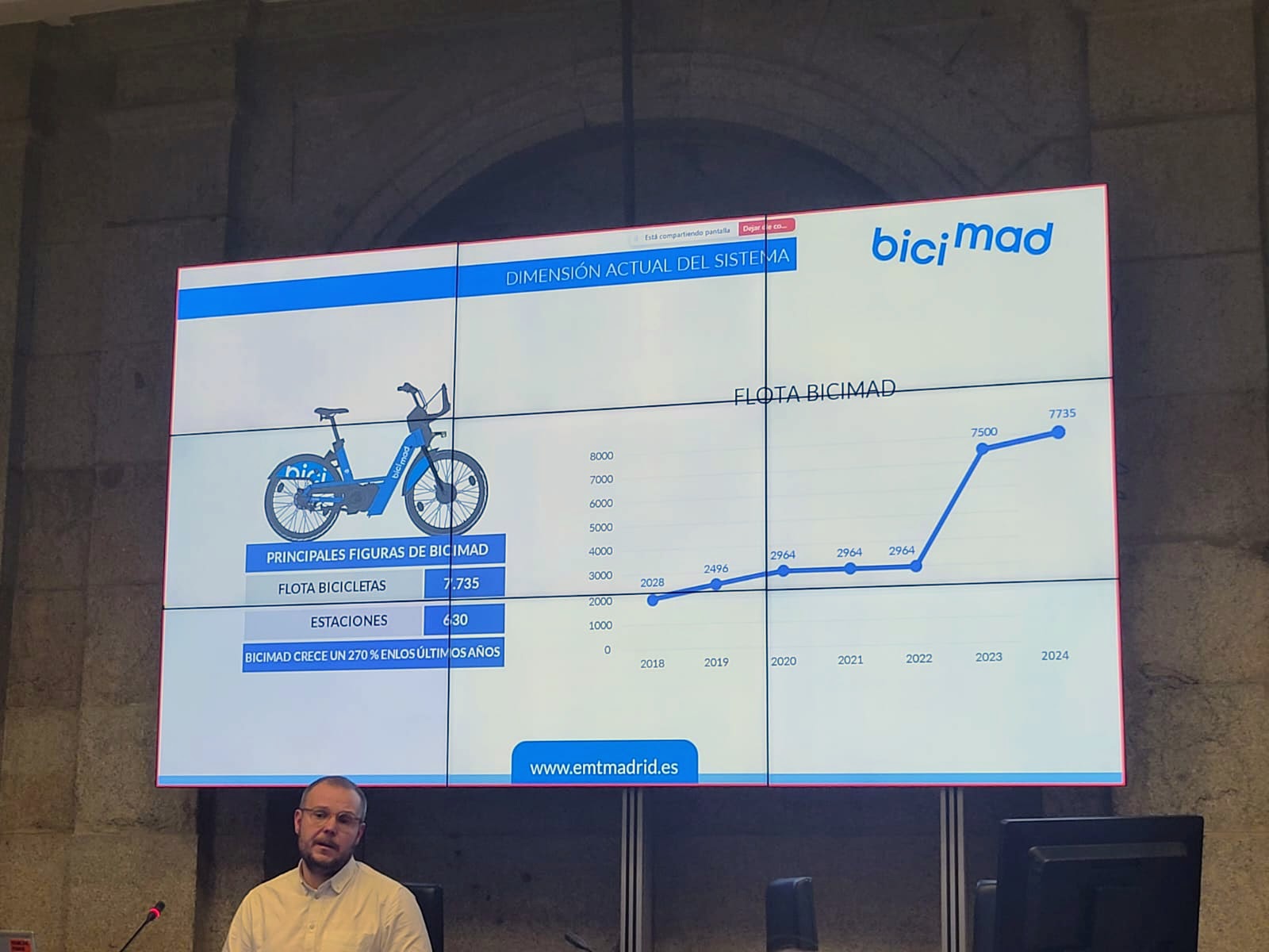 Este es el grรกfico que presentaron la semana pasada sobre Bicimad. El total de 7.735 de bicicletas disponibles hay que restarle las que estรกn en depรณsito, unas 1.000, para sustituciones. Es decir, el porcentaje de bicis que hemos analizado supone aproximadamente un 20 % de las bicis disponibles (6.500, aprox.)