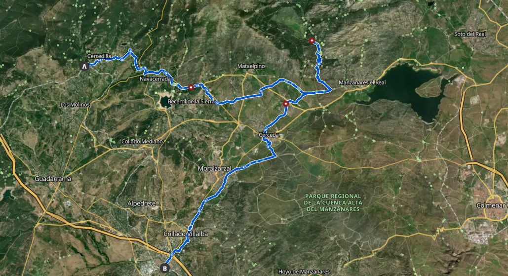 La vuelta será por diferente recorrido hasta la estación de Cercanías de Collado-Villalba y regreso a Madrid en Cercanías.