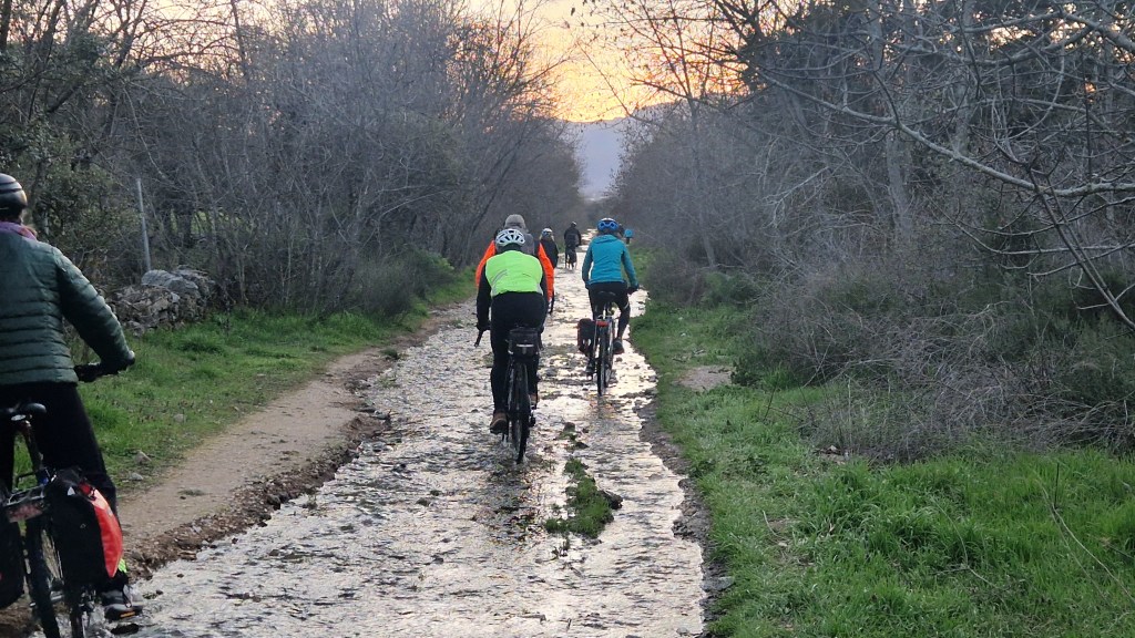 Ruta en bici de unos 50-55 km. El recorrido transcurre por tramos urbanos, pistas en razonablemente buen estado y calzada (el tramo puede variar en función del estado de la superficie). Es importante tener en cuenta que el recorrido será en plan tranquilo y sin prisas.