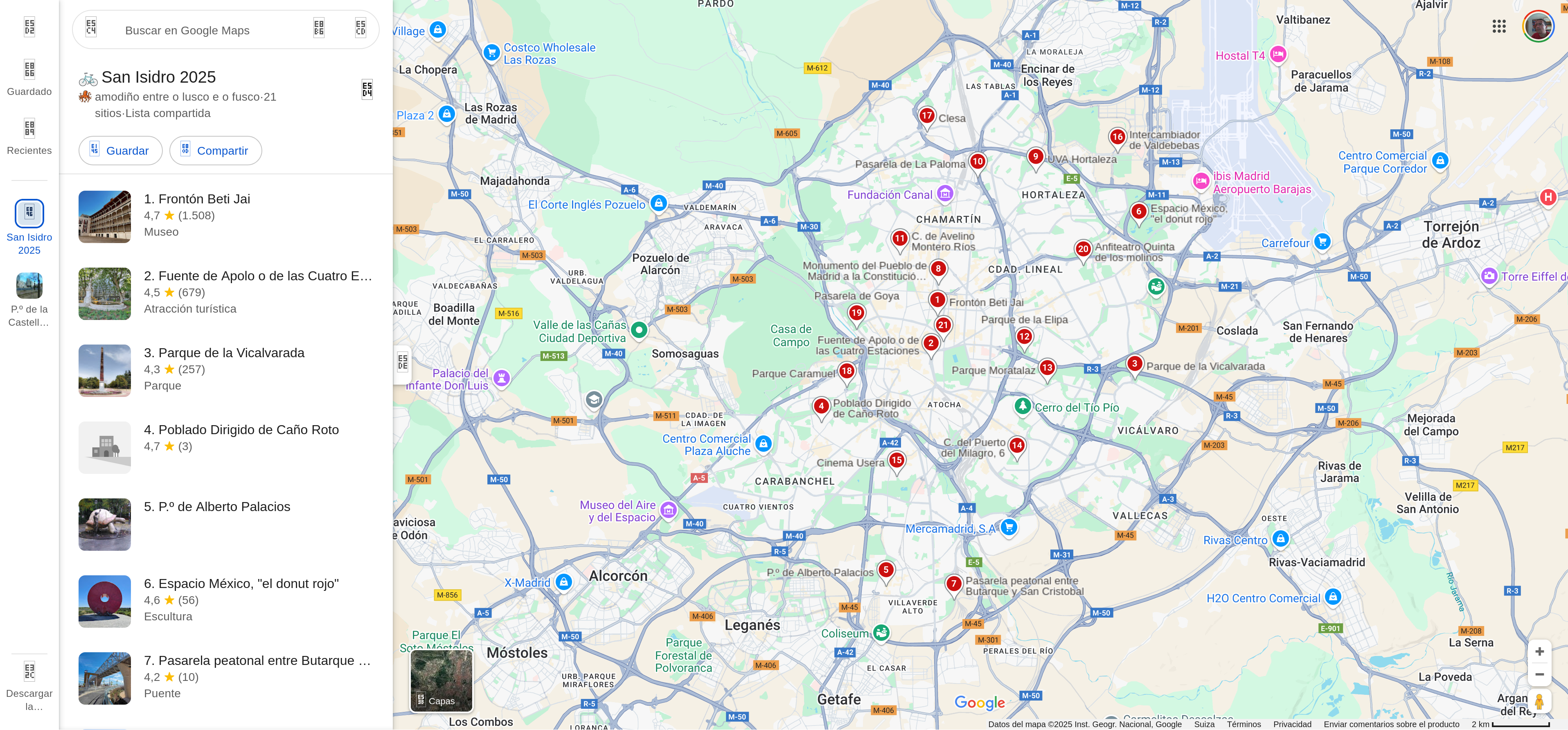 Localización de las paradas en Google Maps