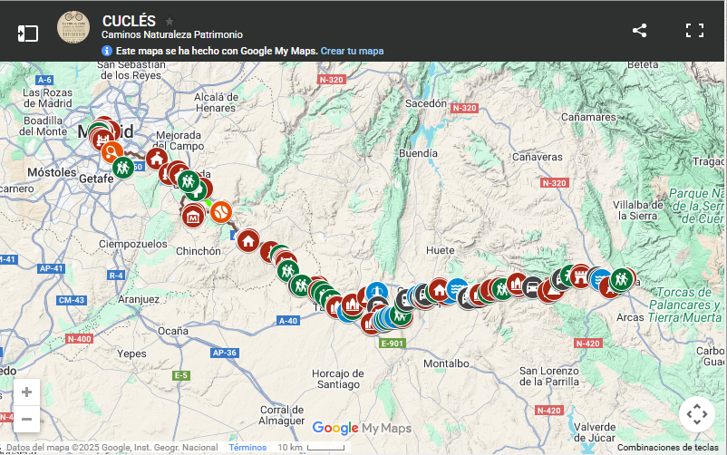 Madrid – Rivas Vaciamadrid – La Poveda – Arganda del Rey – Morata de Tajuña – Perales de Tajuña – Villarejo de Salvanés – Fuentidueña de Tajo – Belinchón – Tarancón – Huelves – Uclés