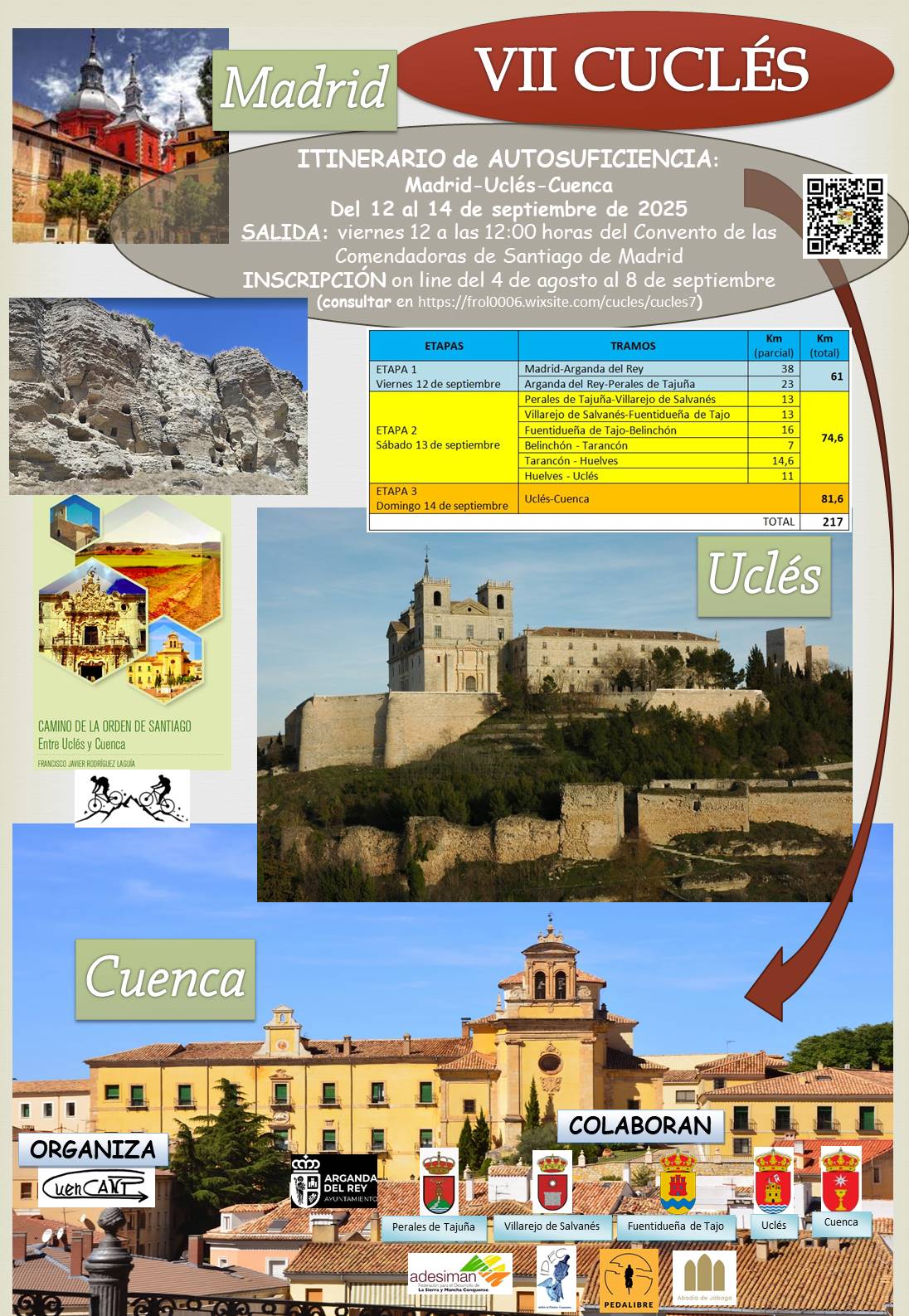 Actividad de autosuficiencia en bici del 12 al 14 de septiembre de 2025 (viernes, sábado y domingo) que rememora el recorrido que siguieron de forma continuada los caballeros y tropas de la Orden de Santiago entre Uclés (donde está el priorato de la Orden) y Cuenca (Track).