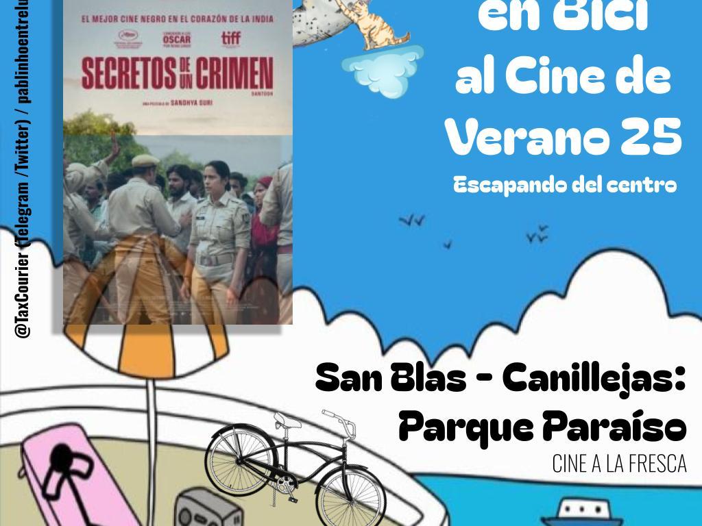 📣 Este viernes 11 de julio, 2º paseo #EnBicialCinedeVerano 2025, tour 131Barrios tiene Madrid. 🚴♂️Ciclismo urbano 🚴♀️ escapando del Centro bajo la luz de la luna de los Veranos de la Villa ➕ Cine 🎞 a la fresca con destino Parque del Paraíso (San Blas – Canillejas) para ver Secretos de un Crimen.
