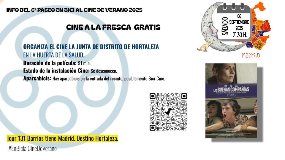 Esta vez nuestro destino es la Huerta de la Salud, en el distrito de Hortaleza, para ver la película: Las Buenas Compañías de Silvia Munt.