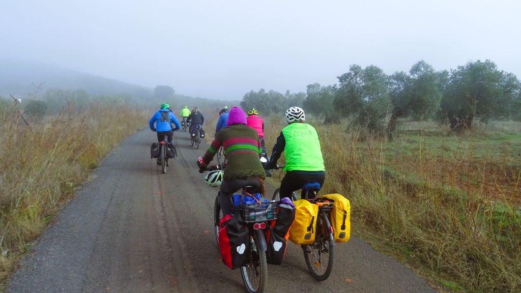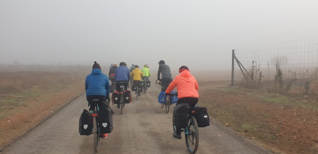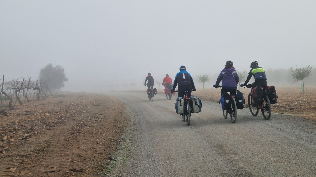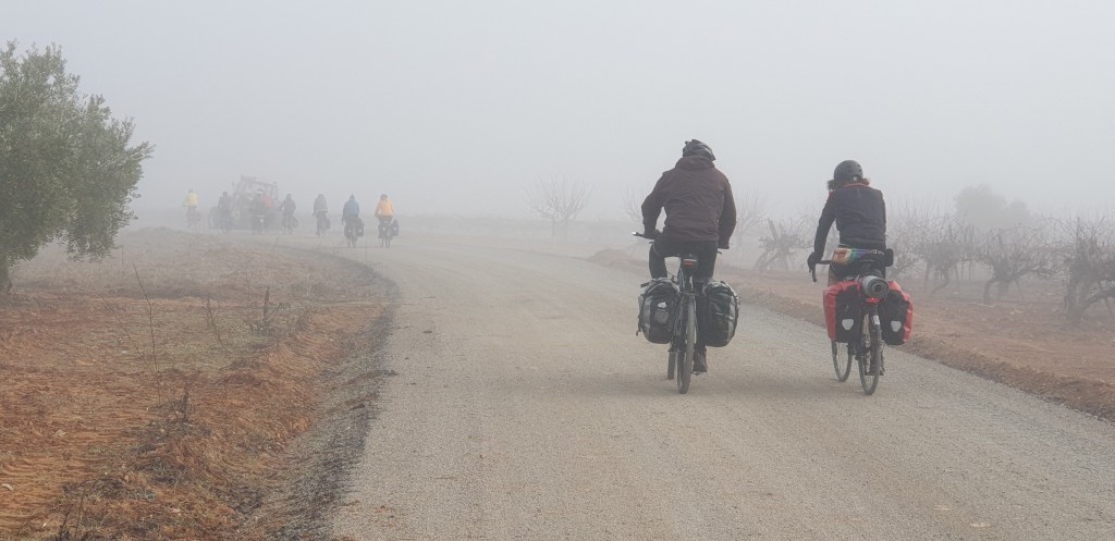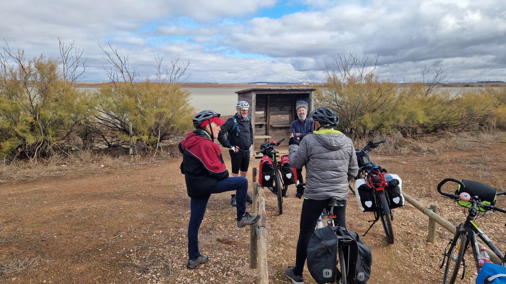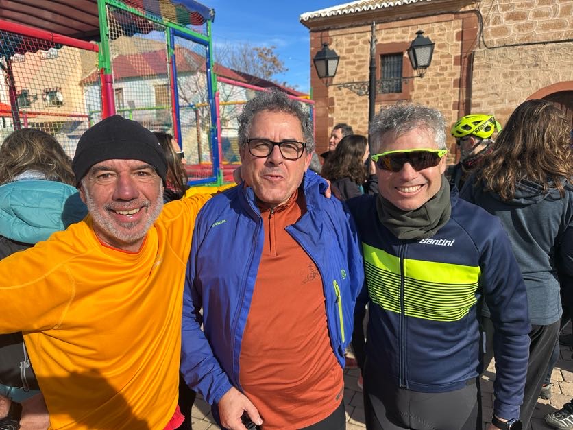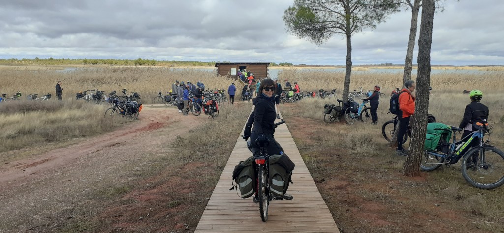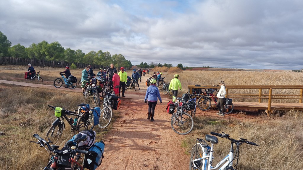 A los organizadores —María, Pedro y Juanma— les debemos el cuidado en los detalles, el ritmo tranquilo y la atmósfera de apoyo mutuo que caracterizó el viaje. Y a tod@s l@s participantes, gracias por la buena disposición, por compartir pedales, risas, silencios y alguna duda resuelta entre tod@s. Y gracias a la tierra manchega —sus lagunas, sus montes, sus campos y su horizonte sereno— por acompañarnos en el camino.
