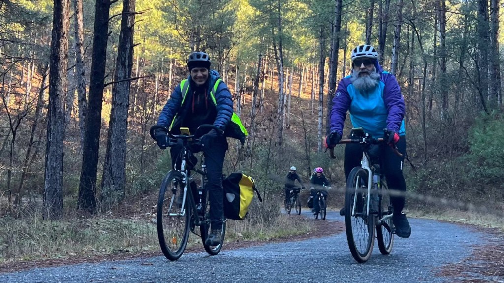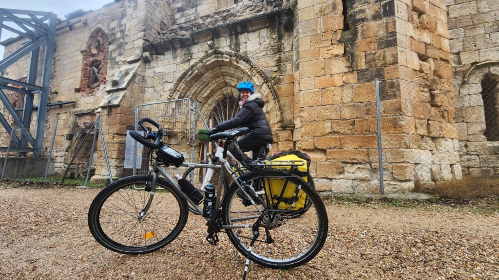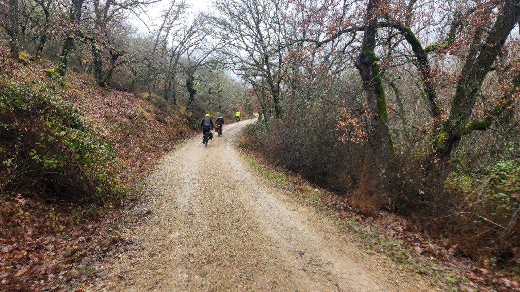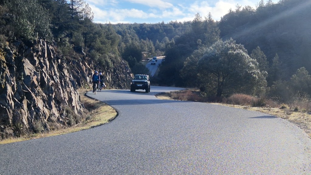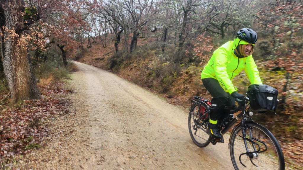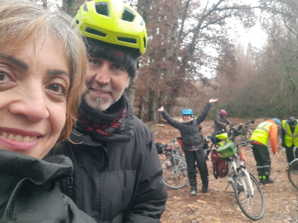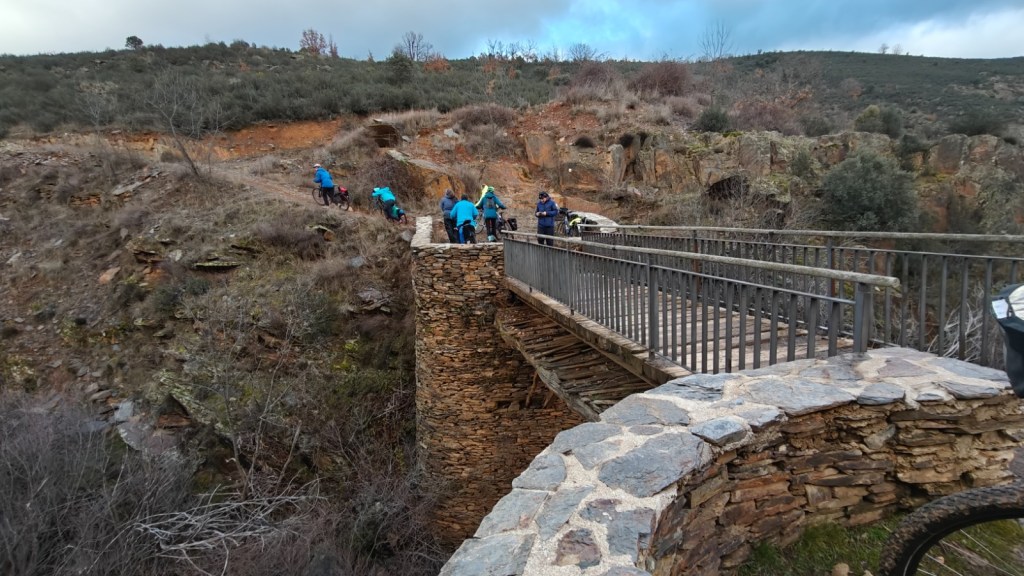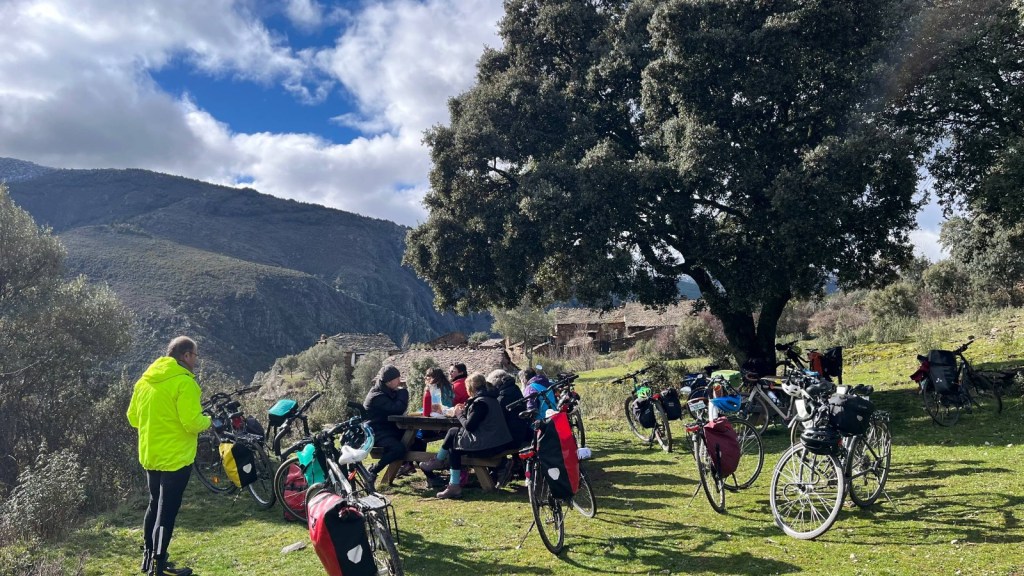 El protagonista inesperado fue el manto blanco: nos tocó ciclar sobre nieve cuajada por encima de los 1.200 metros, añadiendo un punto de épica a cada pedalada. Finalmente, todos los caminos condujeron al Monasterio de Bonaval (aprox. 850 m), donde el grupo se reunificó rodeado de historia cisterciense. Tras el esfuerzo, repusimos fuerzas comiendo a orillas del río Jarama, cerca de Retiendas (890 m), antes de dirigirnos a Tamajón (1.030 m) para la pernocta y el merecido descanso.