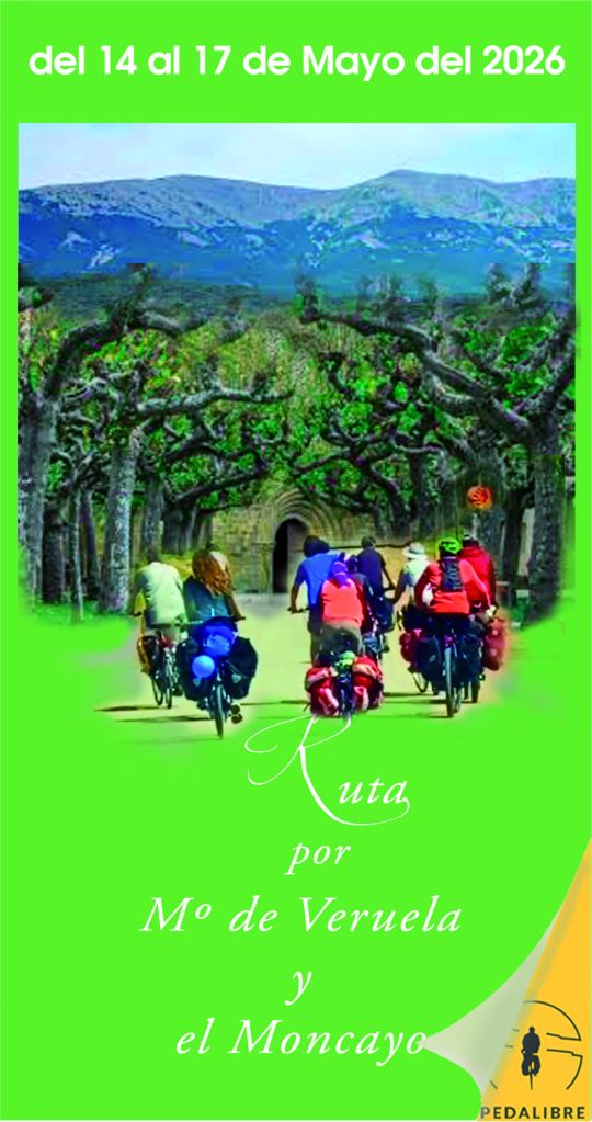 Esta ruta nos llevará por tierras de Zaragoza y Soria, tomando como eje vertebrador de la ruta, la sierra del Moncayo. Partiremos desde la localidad de Vera de Moncayo, donde nos encontraremos la tarde del día 14, hay camping. Las siguientes jornadas nos llevarán por Trasmoz, Tarazona, Los Fayos, Vozmediano, Agreda, Aldehuela del Moncayo, Añón del Moncayo y terminaremos en Vera de Moncayo el día 17, visitando el Monasterio de Veruela. Ruta llena de visitas y de kilometraje moderado por lo que os animamos a compartirla con nosotras y nosotros, gracias.