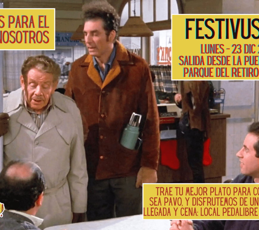 Rodaremos al inicio por la Casa de Campo, nos adentraremos en Madrid y recorreremos algunas de las calles más iluminadas del centro, sin perder el espíritu escéptico de Festivus. Pasaremos por algún barrio más y cruzaremos el Retiro, para terminar en la sede de Pedalibre (c/ Martínez Izquierdo, 53), donde habrá cena conjunta al estilo de otros años. Todos los 23 de diciembre, un grupo … Continúa leyendo Festivus 23D: un Festivus para el resto de ciclistas
